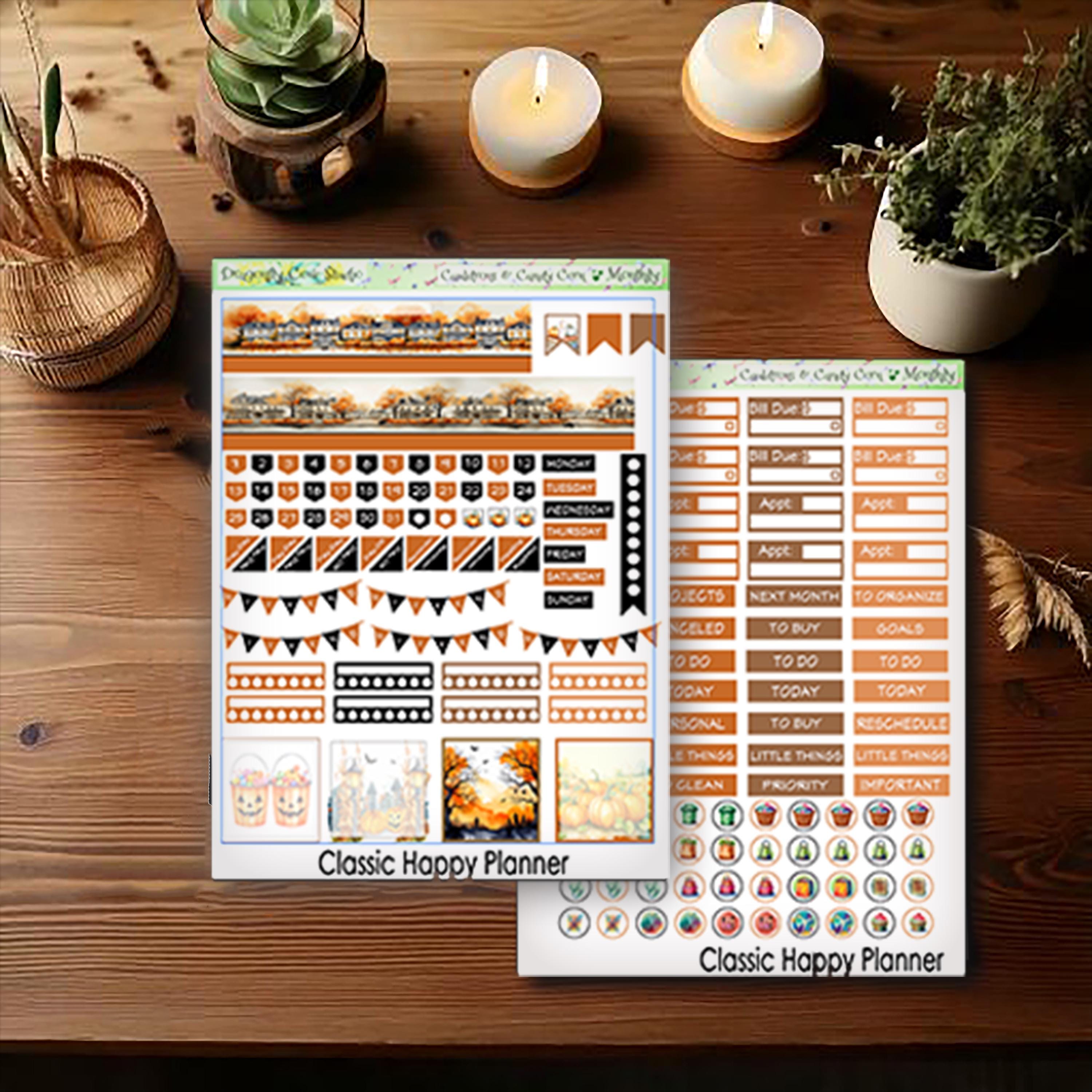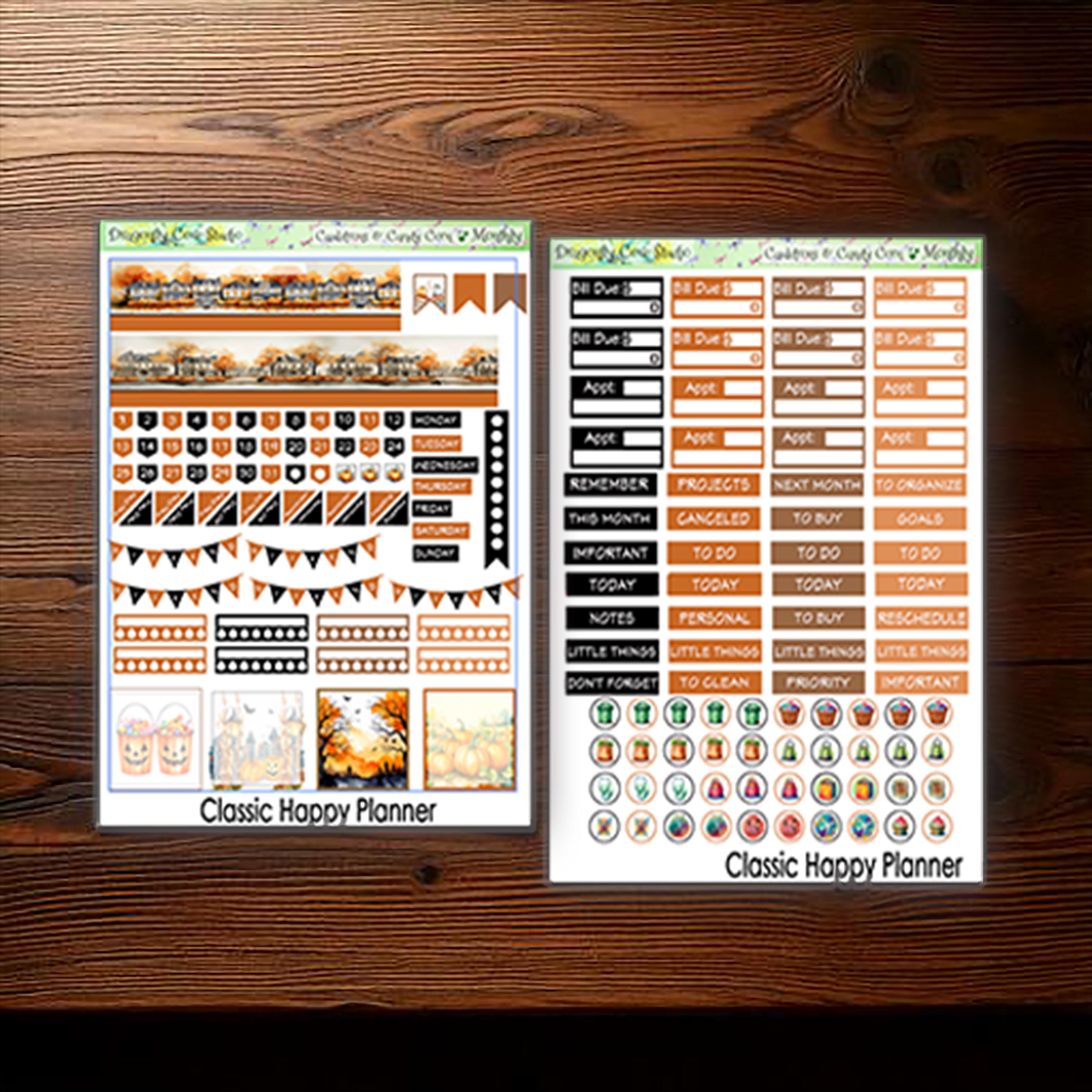 Classic Happy Planner Printable Stickers Monthly Kit | Cauldrons & Candy Corn | Silhouette + Cricut Cut Files + PDF