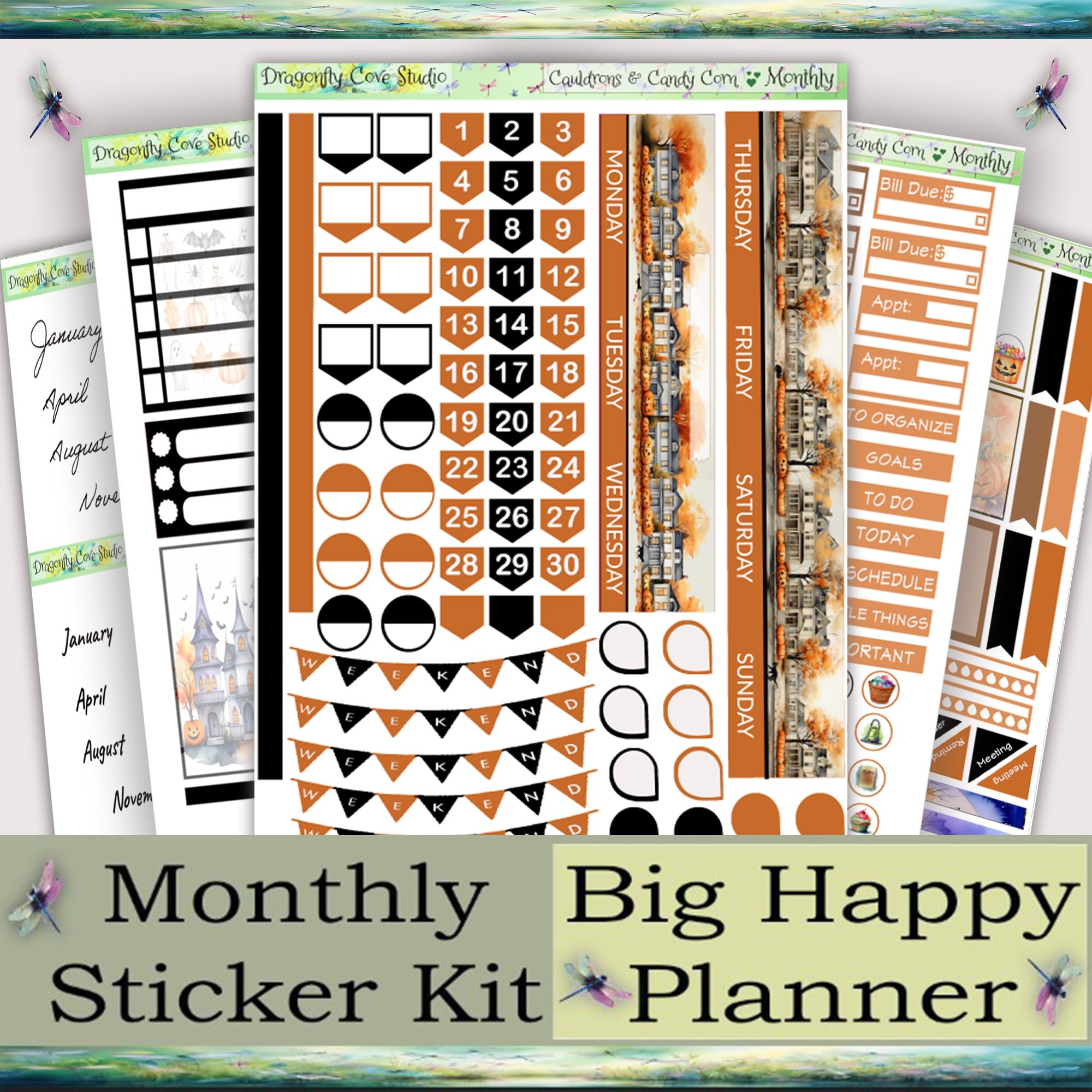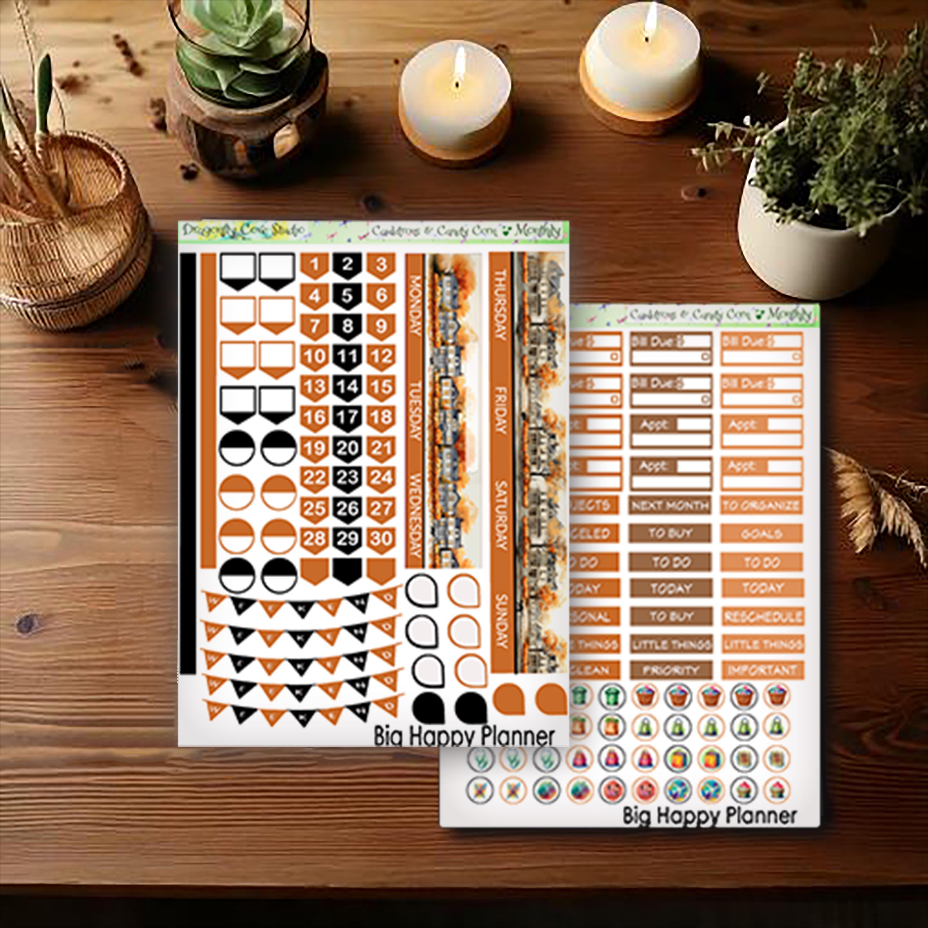 Big Happy Planner Printable Stickers Monthly Kit β Cauldrons & Candy Corn Theme | Silhouette & Cricut Cut Files + PDF for Hand Cutting π