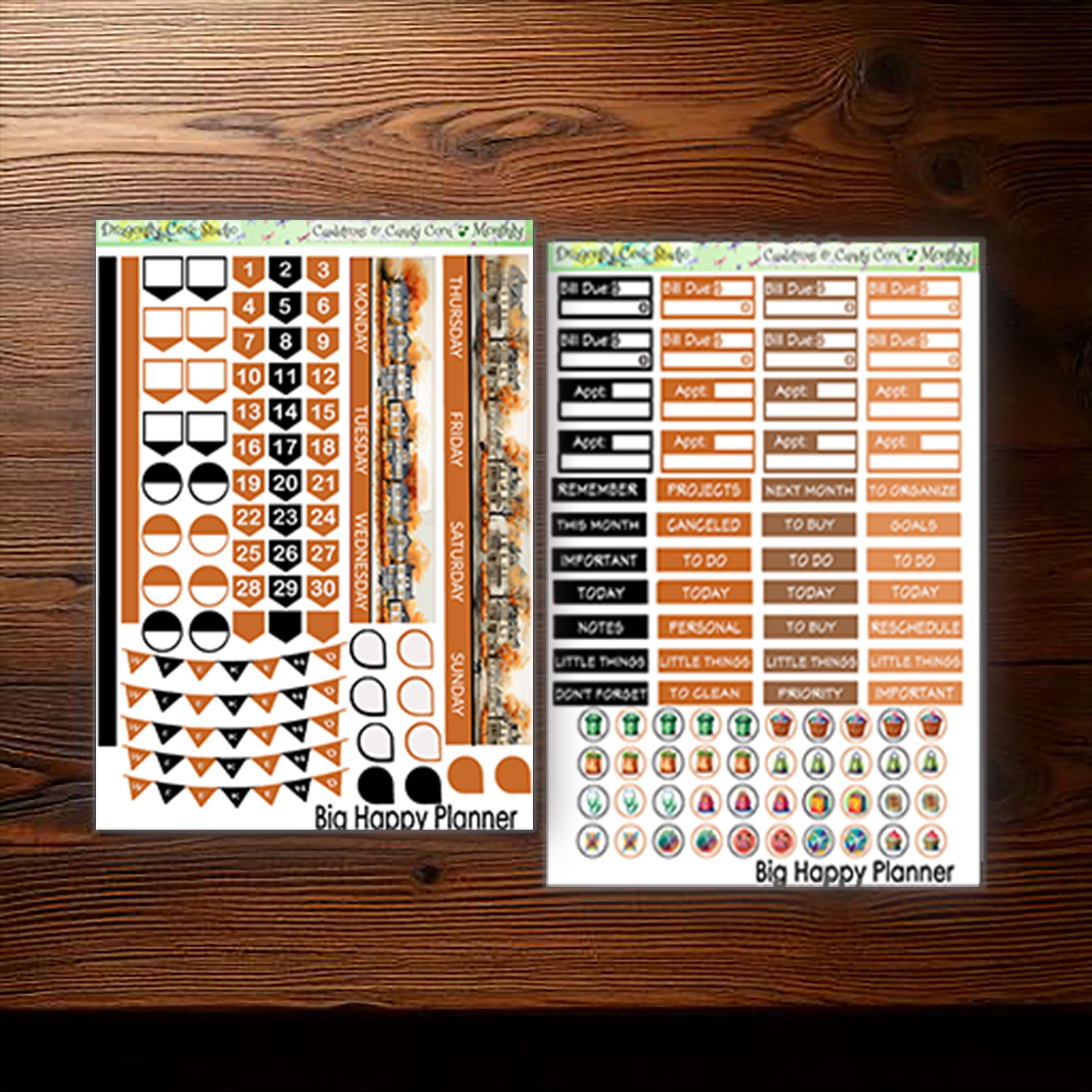 Big Happy Planner Monthly Printable Planner Stickers Kit β Cauldrons & Candy Corn | Silhouette + Cricut Cut Files + PDF for Hand Cutting