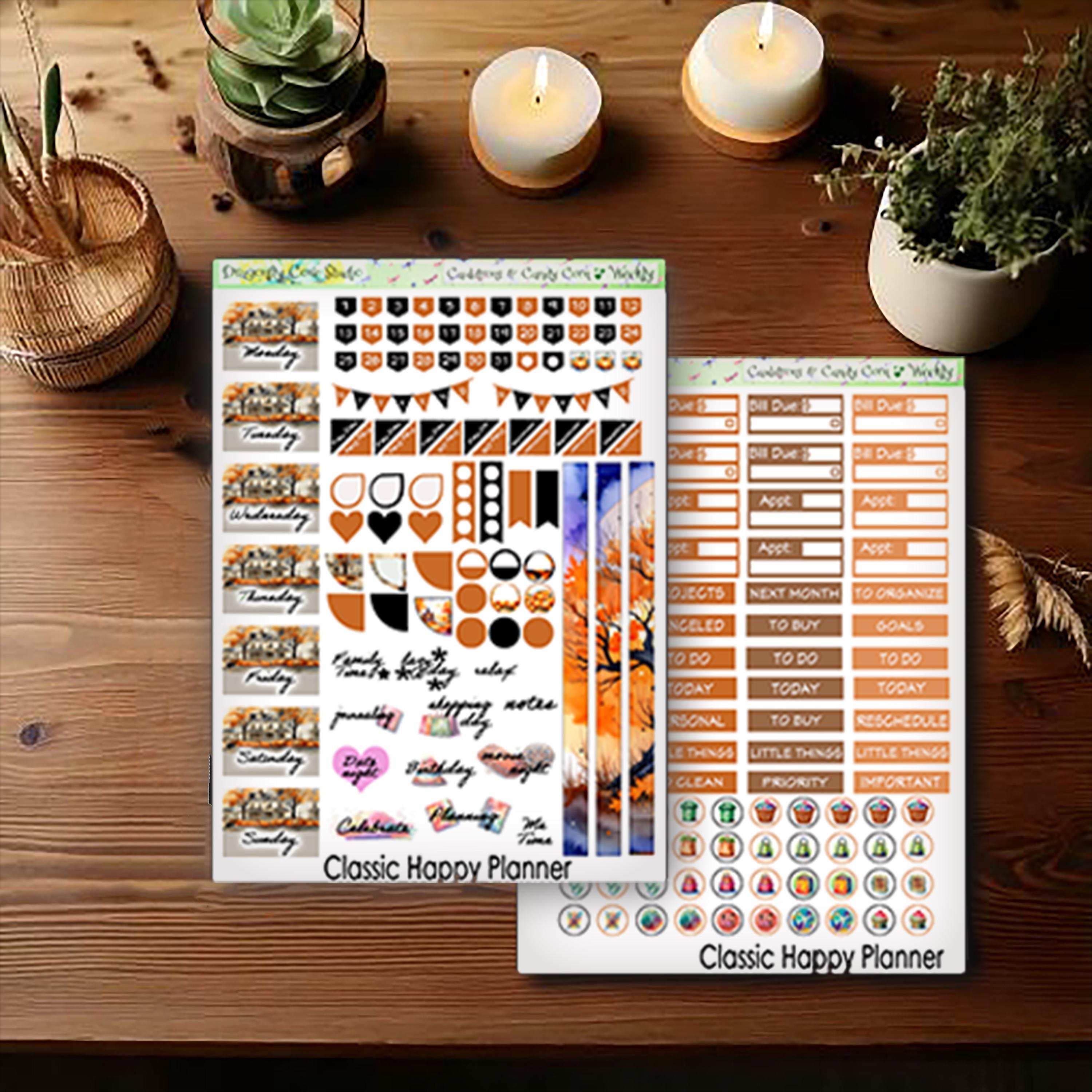 Classic Happy Planner Printable Stickers Weekly Kit β Cauldrons & Candy Corn Theme | Silhouette & Cricut Cut Files + PDF for Hand Cutting π