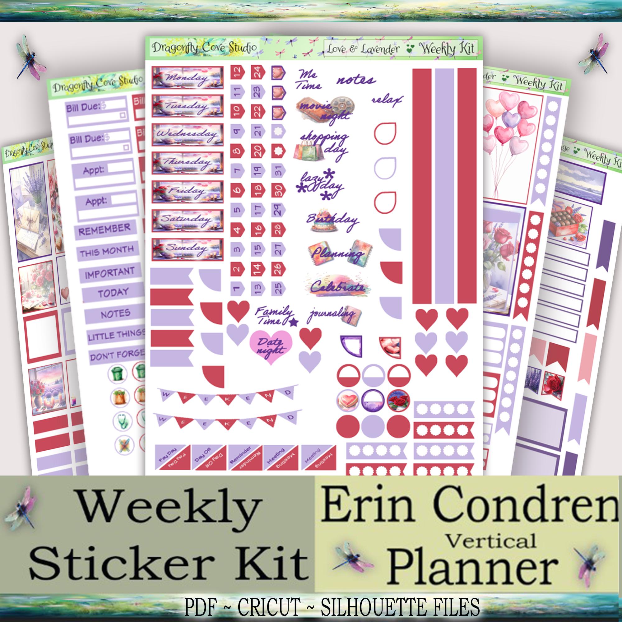 Erin Condren Vertical Planner Printable Stickers Weekly Kit | Love & Lavender | Silhouette + Cricut Cut Files + PDF for Hand Cutting