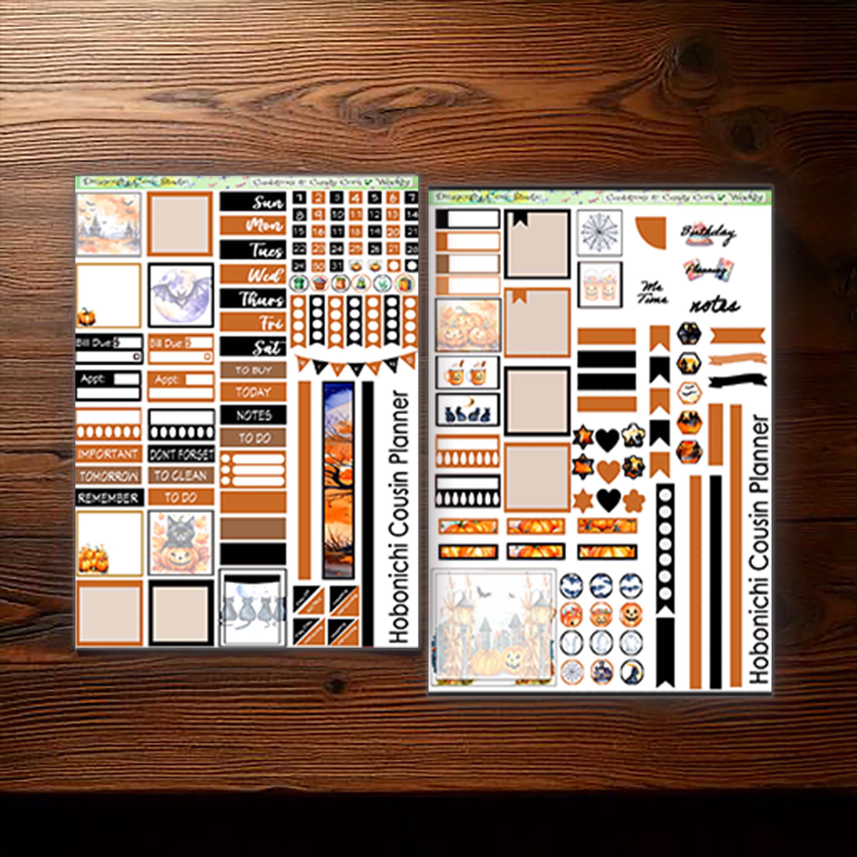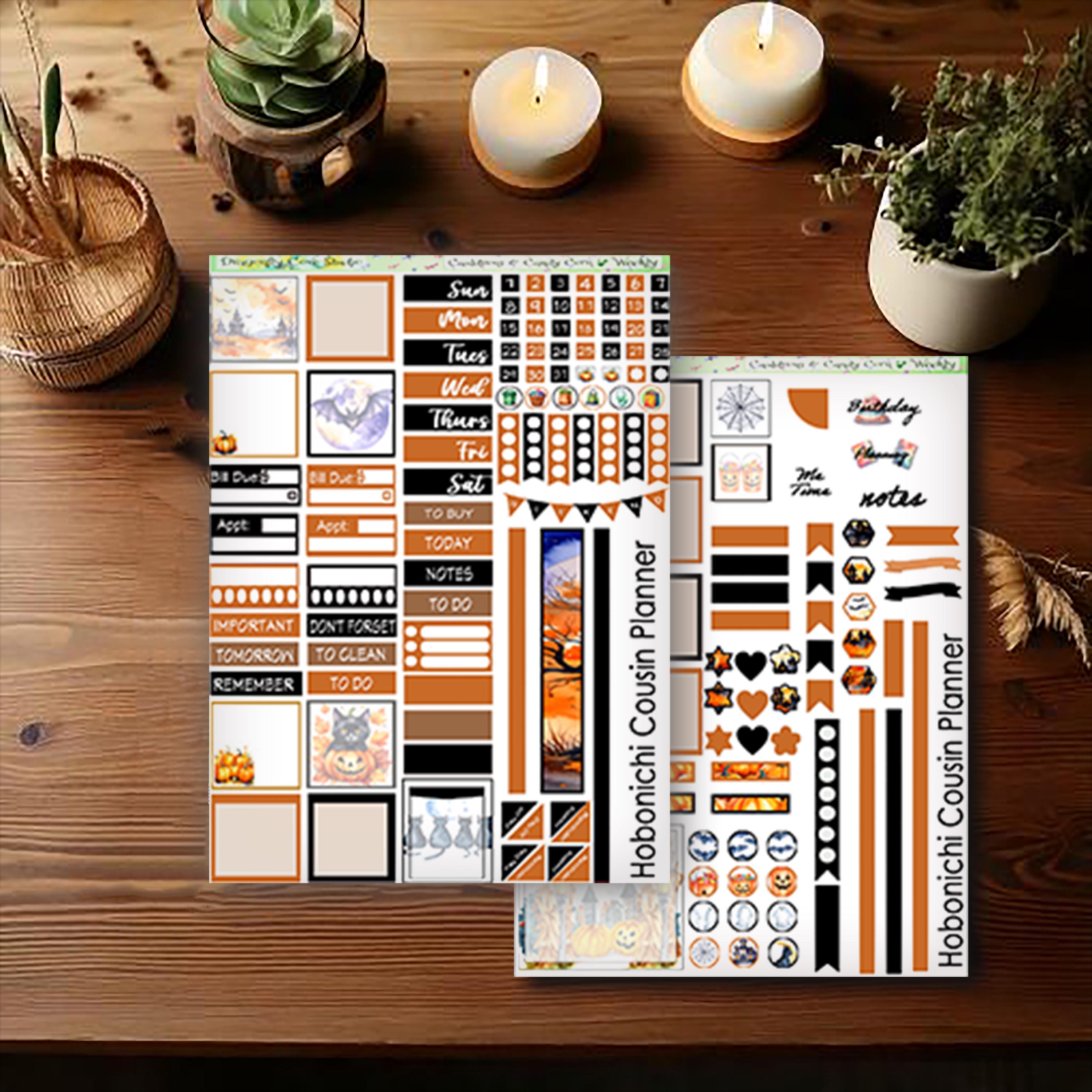 Hobonichi Cousin Weekly Planner Sticker Kit – Cauldrons & Candy Corn Edition | Digital Download 🎃