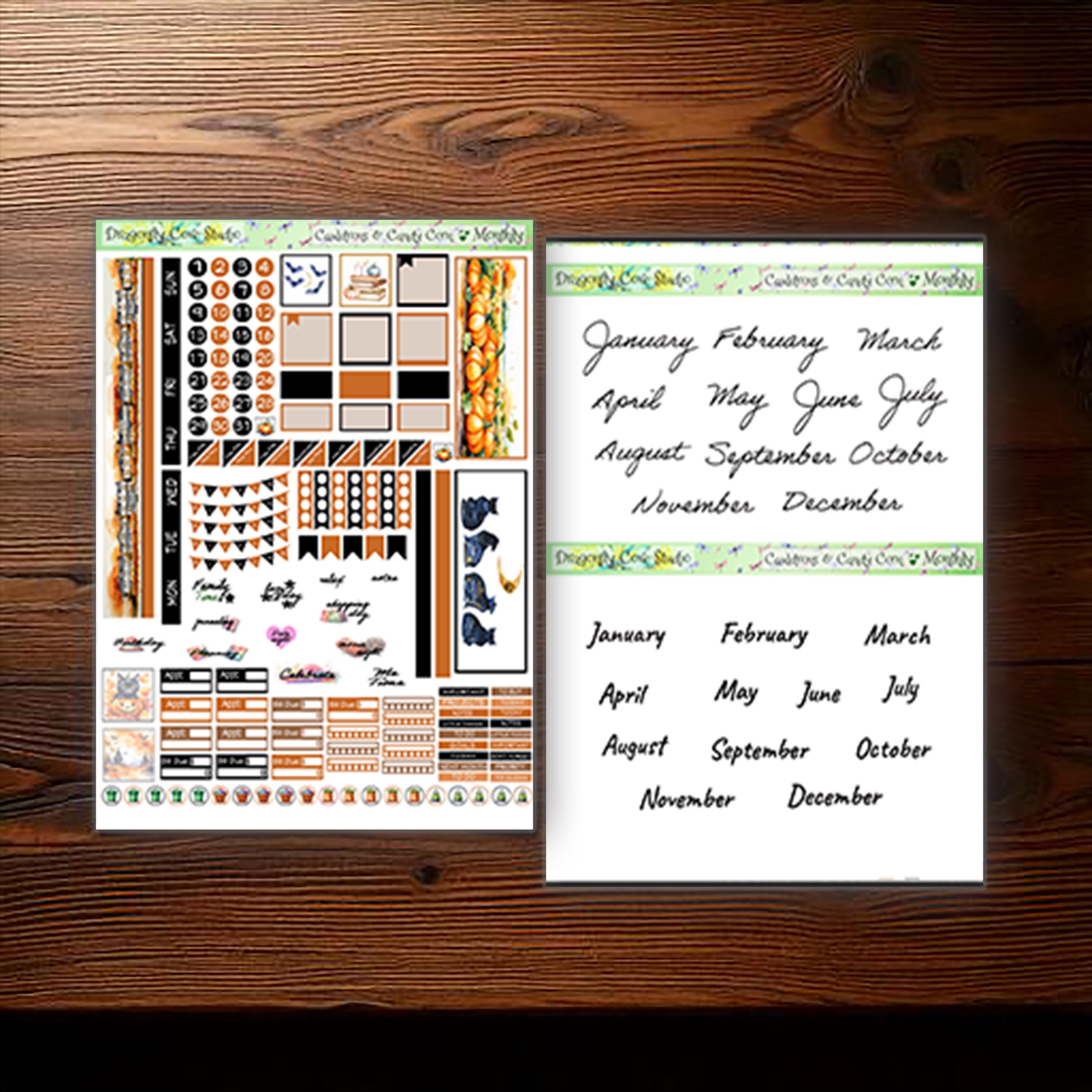 Hobonichi Techo Monthly Planner Sticker Kit β Cauldrons & Candy Corn Edition | Digital Download π