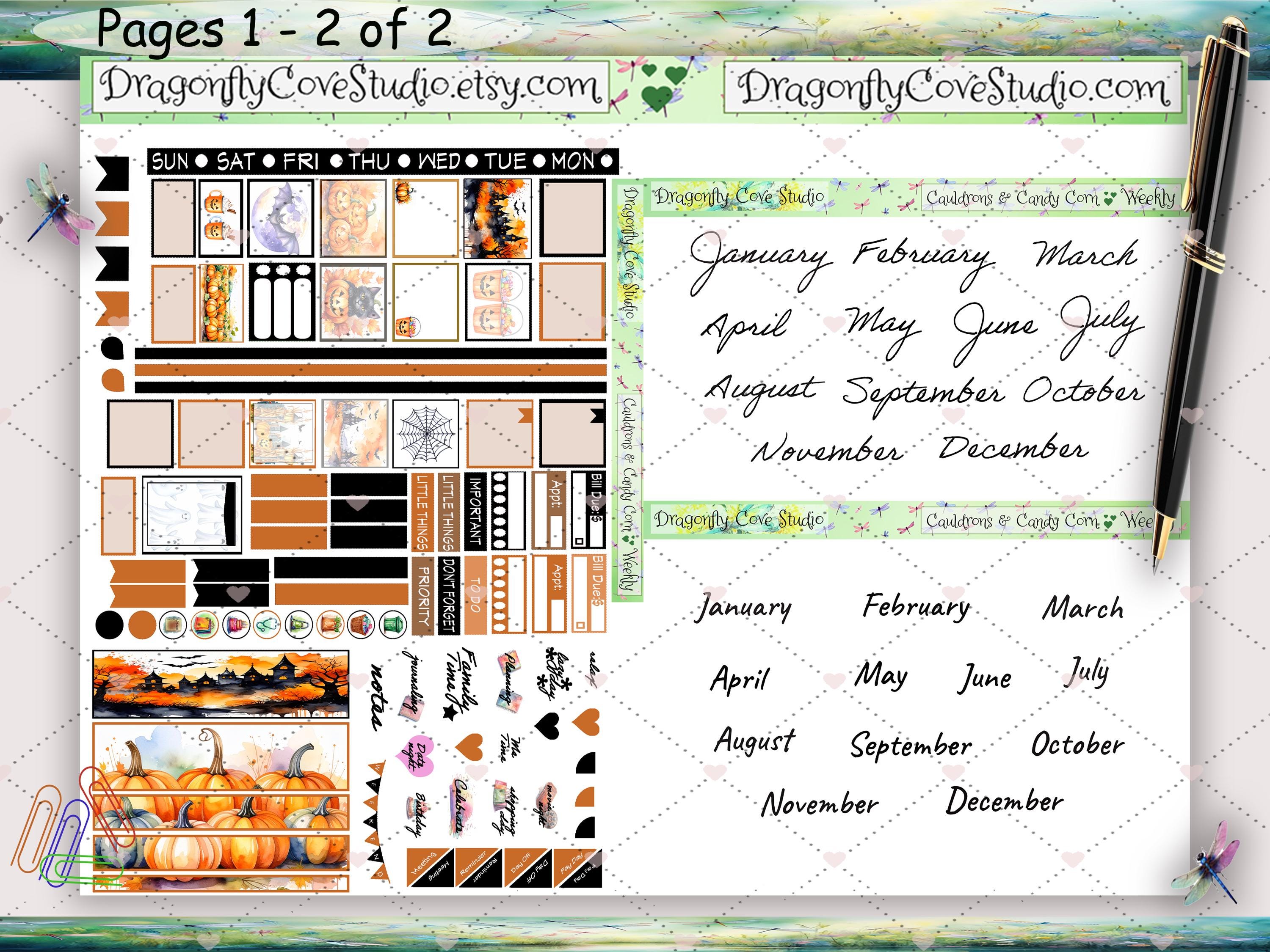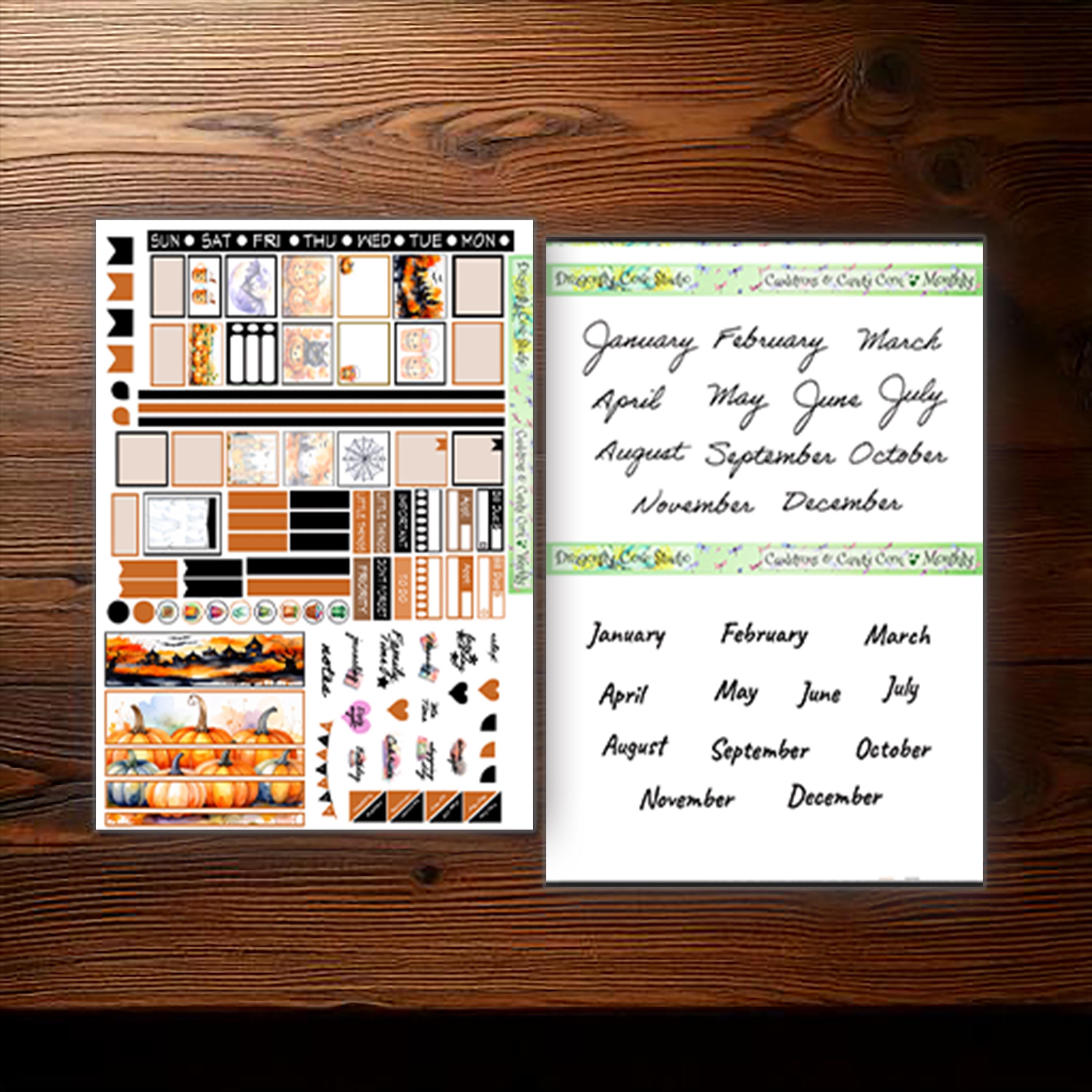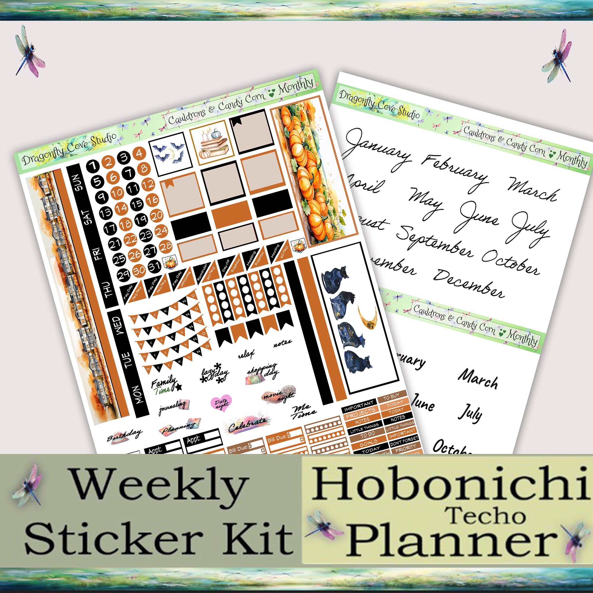 Hobonichi Techo Planner Printable Stickers Kit Weekly - Cauldrons & Candy Corn - Silhouette, Cricut Cut Files and PDF for Hand Cutting