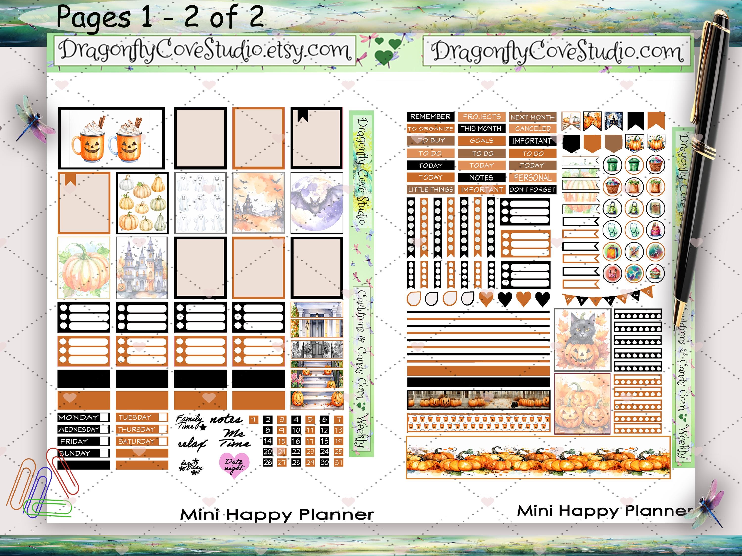 Mini Happy Planner Printable Stickers Weekly Kit - Cauldrons & Candy Corn: Silhouette, Cricut Cut Files and PDF for Hand Cutting