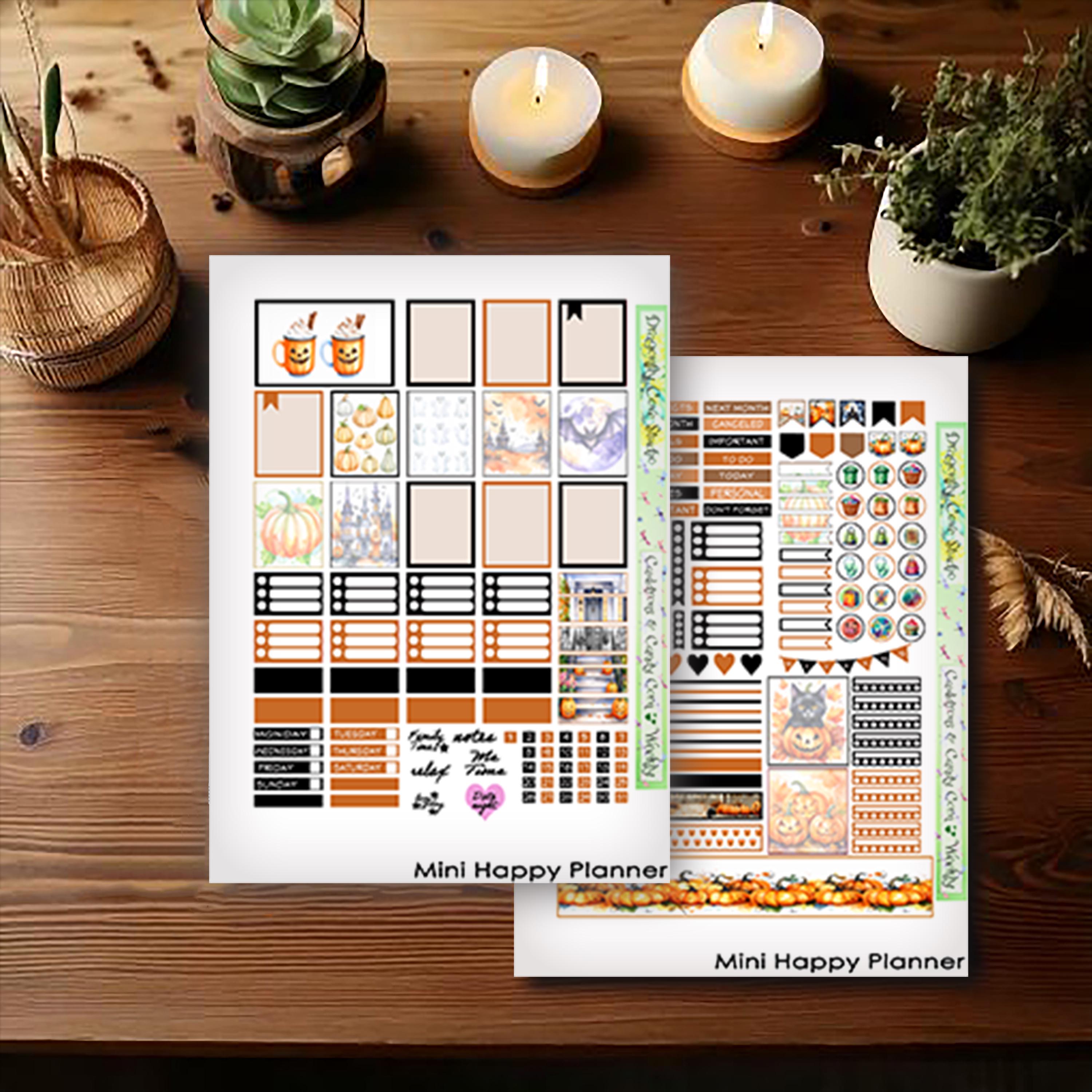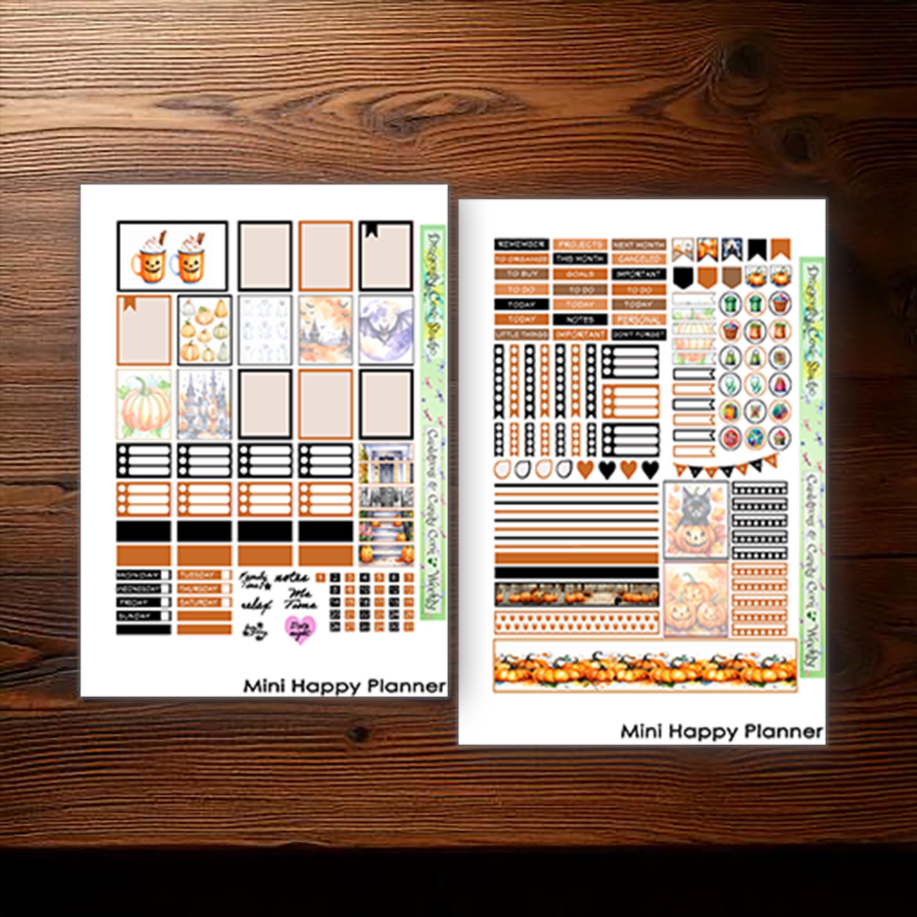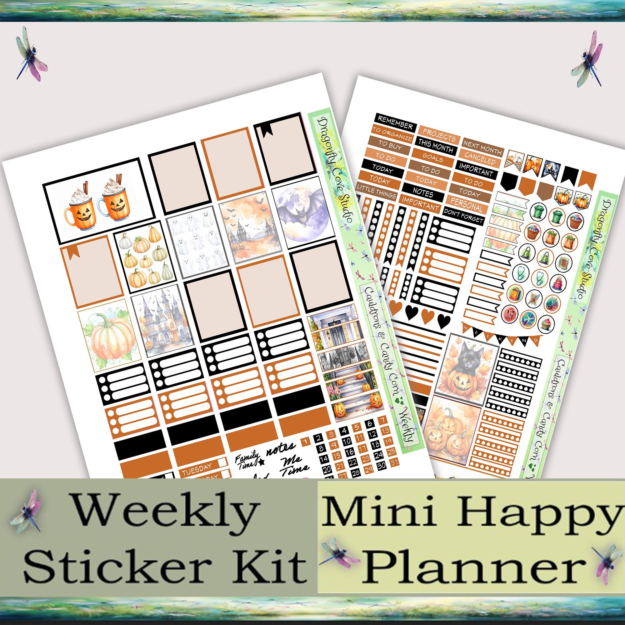 Mini Happy Planner Weekly Sticker Kit – Cauldrons & Candy Corn Edition | Digital Download 🎃