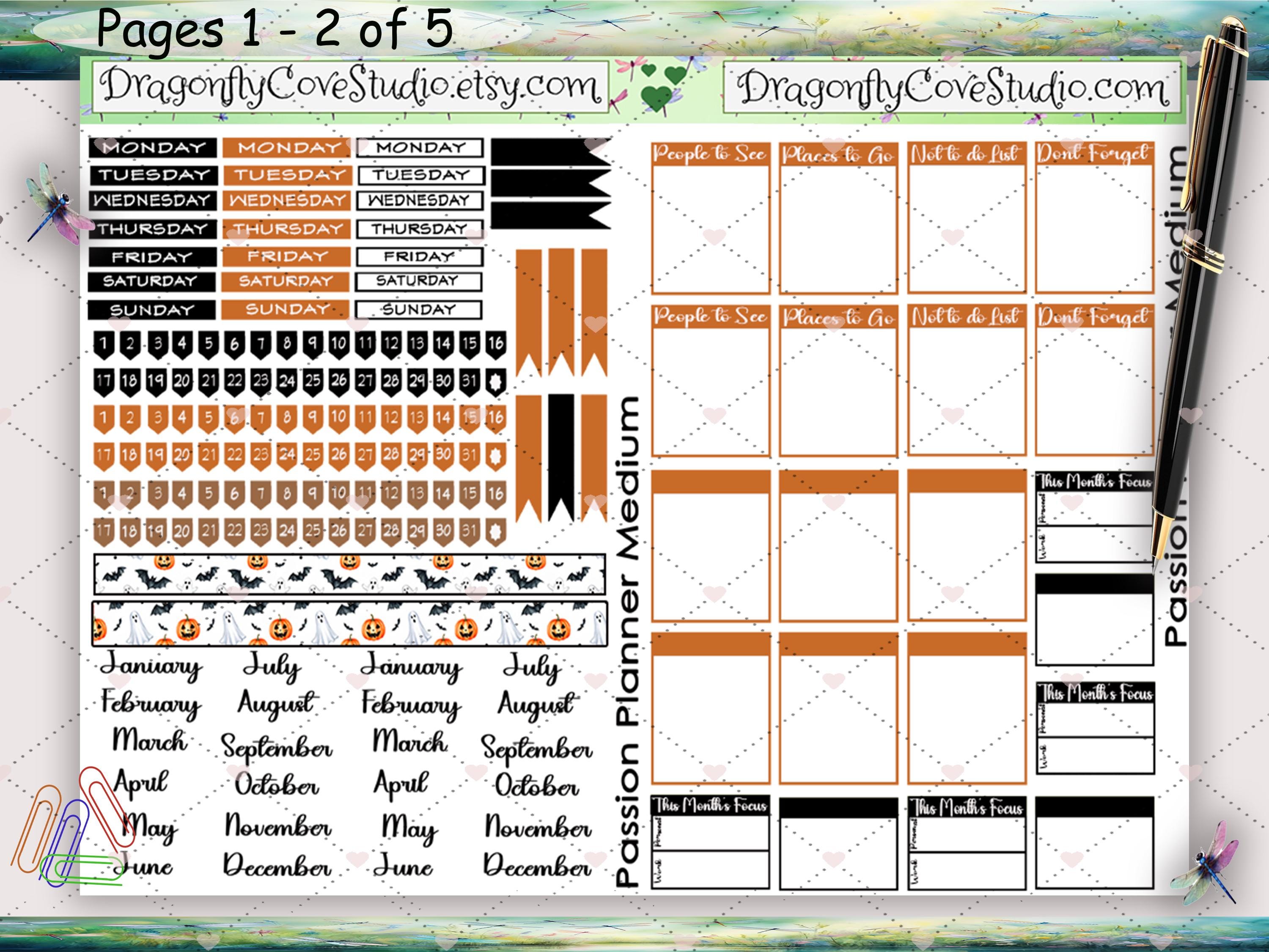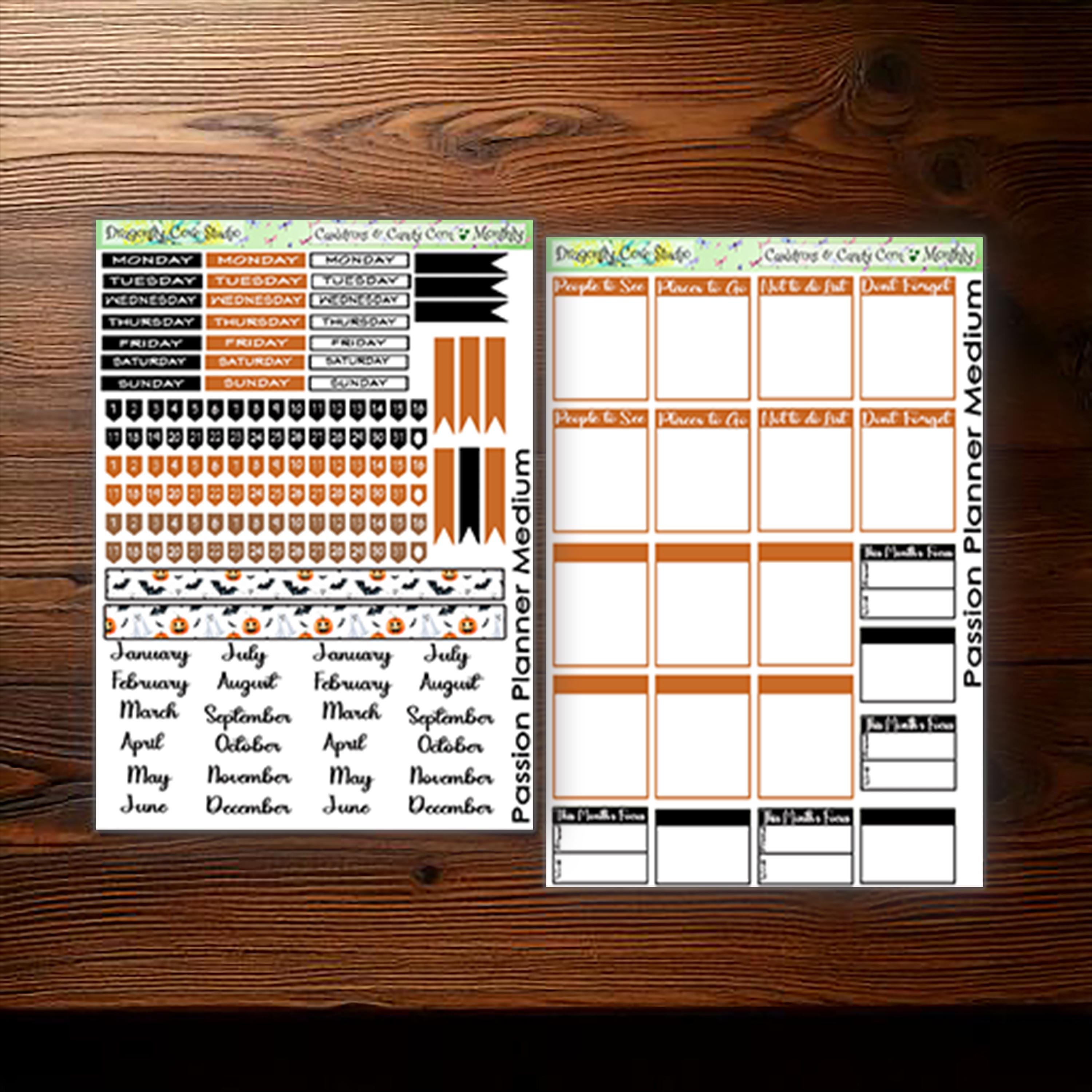 Passion Planner Medium Monthly Sticker Kit โ Cauldrons & Candy Corn | Digital Download ๐