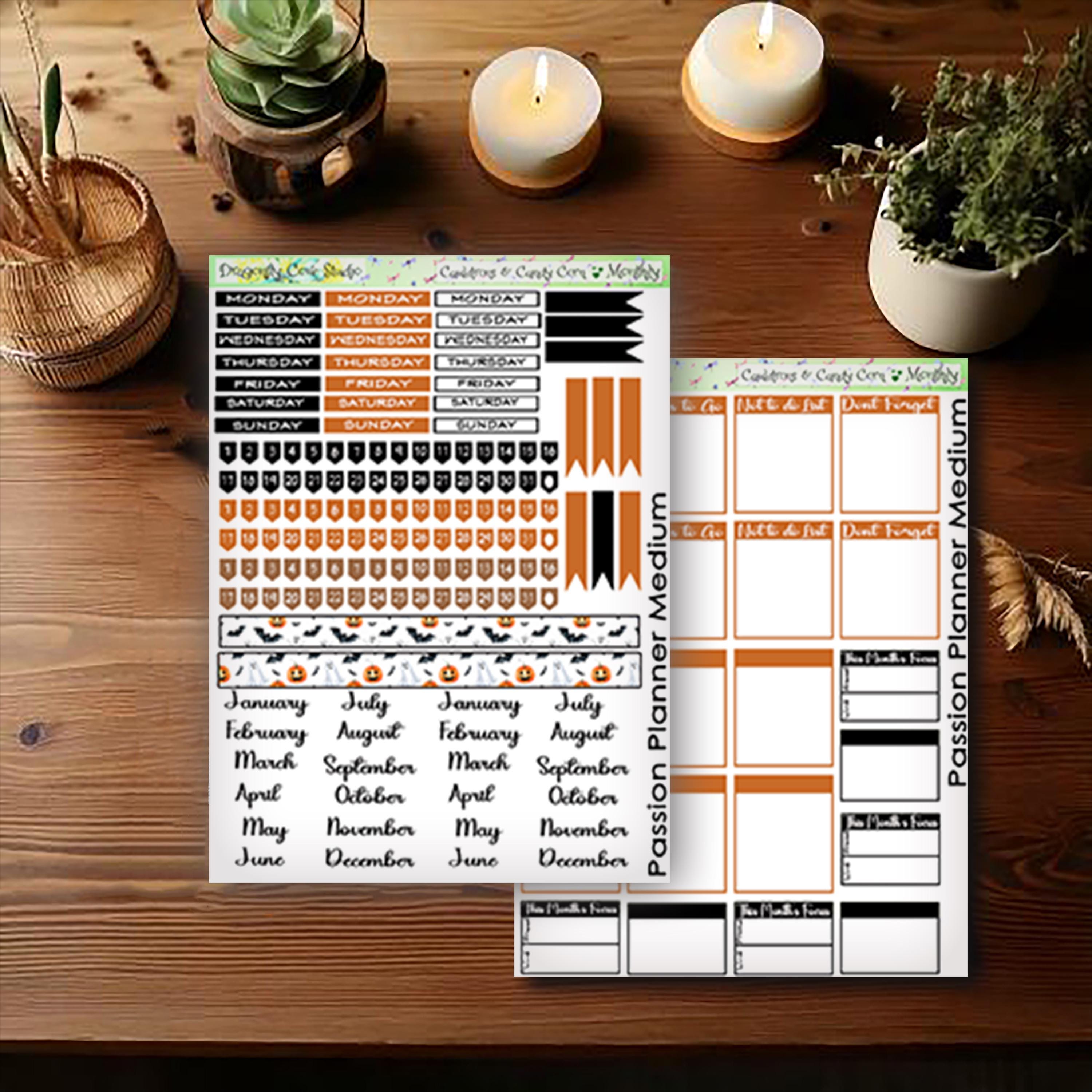 Passion Planner Medium | Monthly Kit | Printable Cauldrons & Candy Corn Stickers for Cricut, Silhouette, PDF Cutting