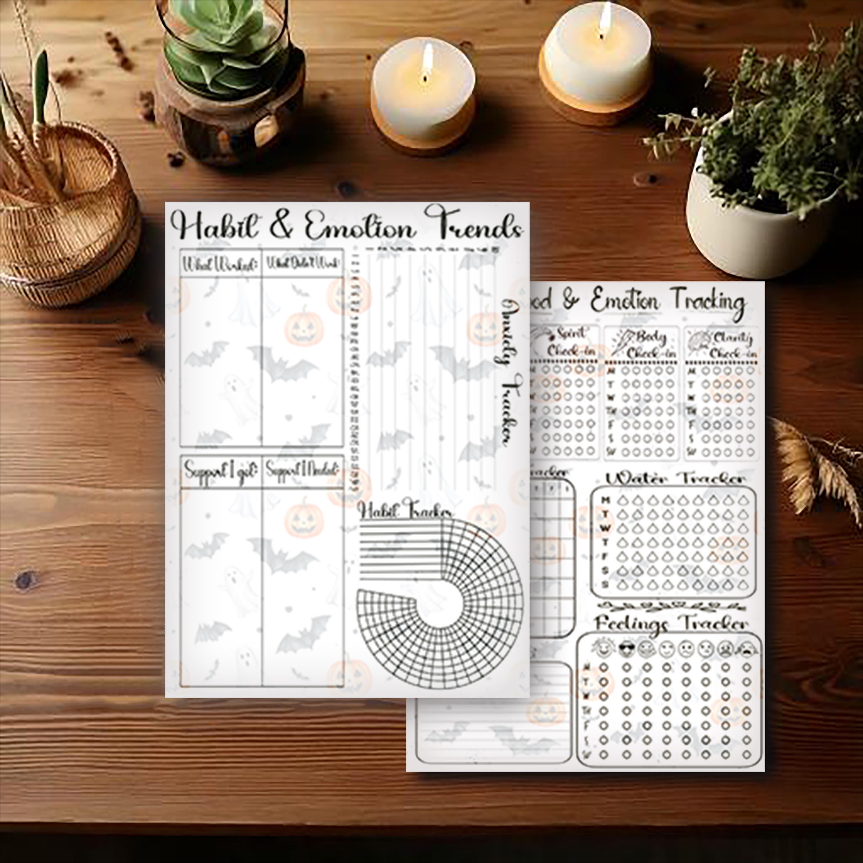 🎃 8 pages of journaling prompts (monthly + weekly)