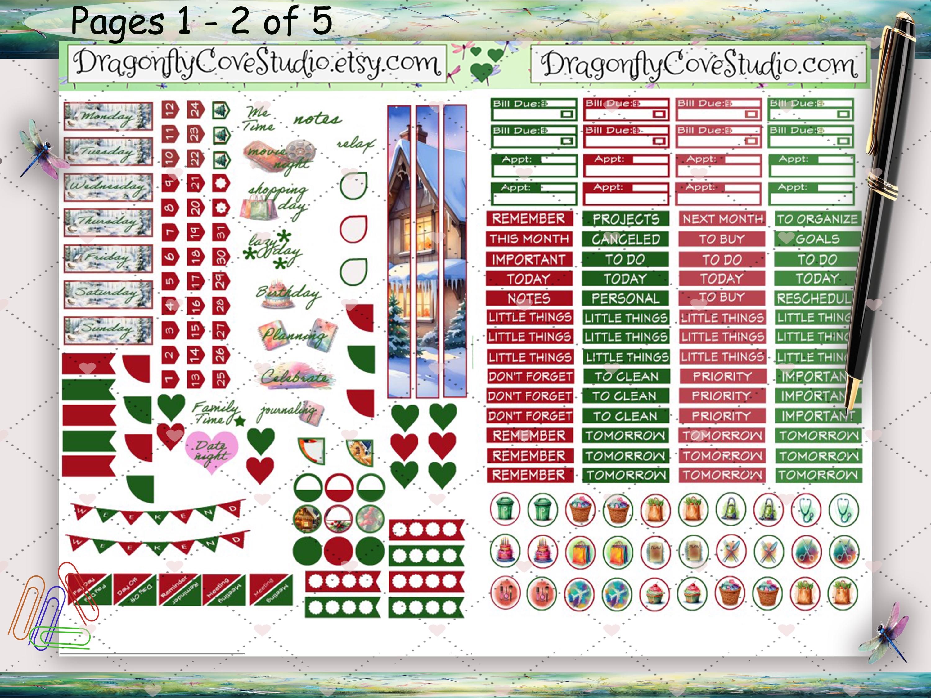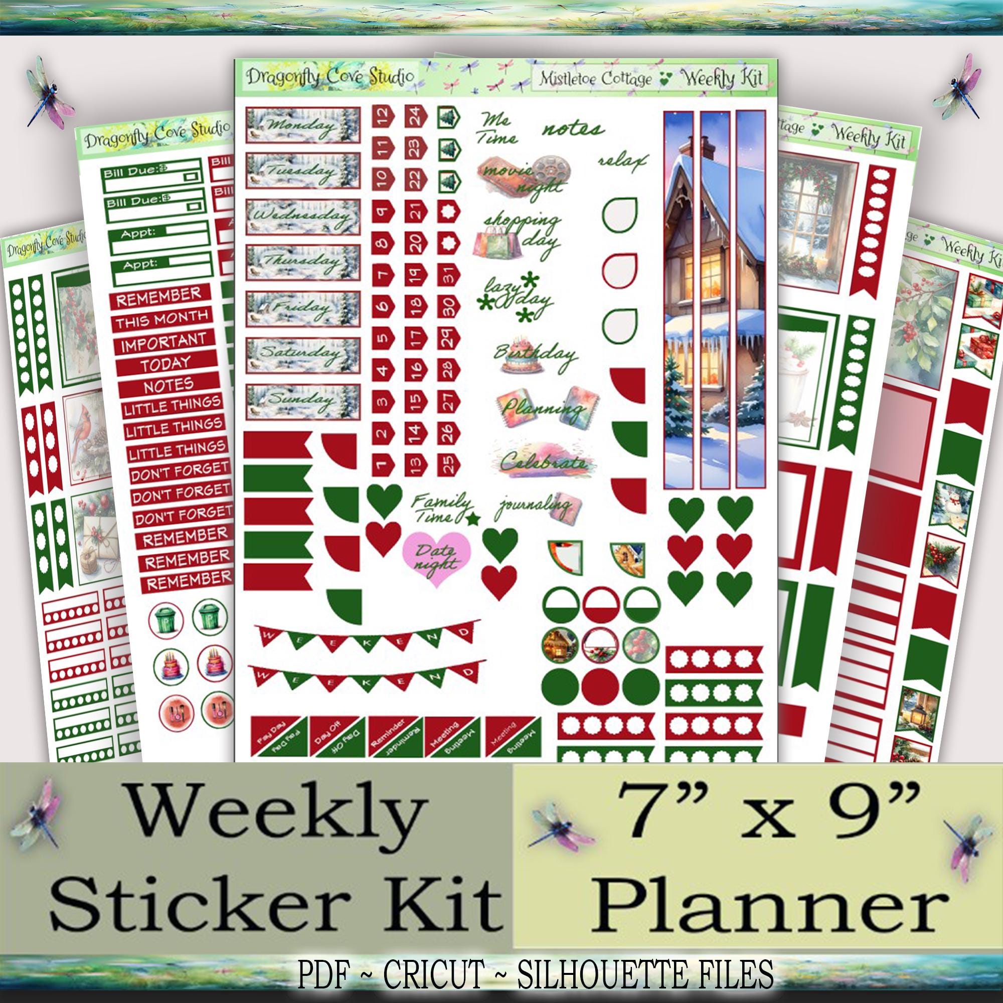 7 x 9 Planner Printable Stickers Weekly Kit | Mistletoe Cottage | Silhouette & Cricut Cut Files + PDF for Hand Cutting