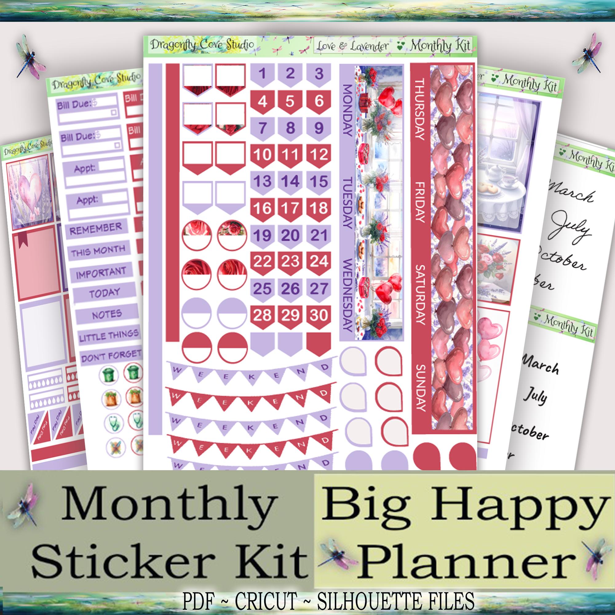 Big Happy Planner Monthly Printable Planner Stickers Kit | Love & Lavender | Silhouette + Cricut Cut Files + PDF for Hand Cutting