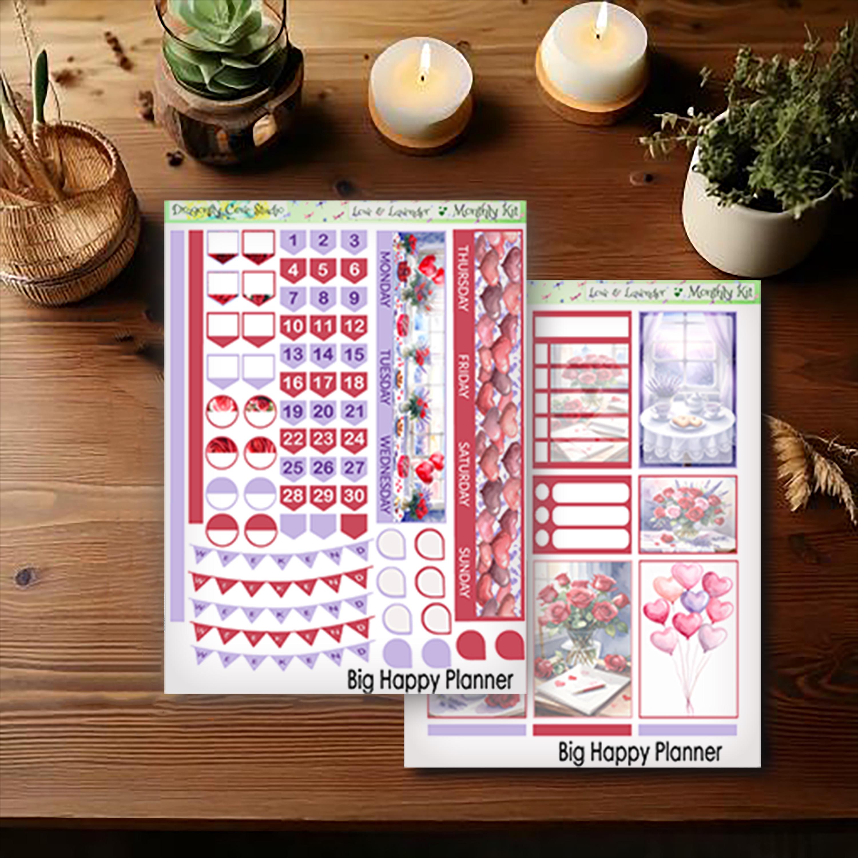 Big Happy Planner Monthly Sticker Kit – Love & Lavender | Digital Download 💜