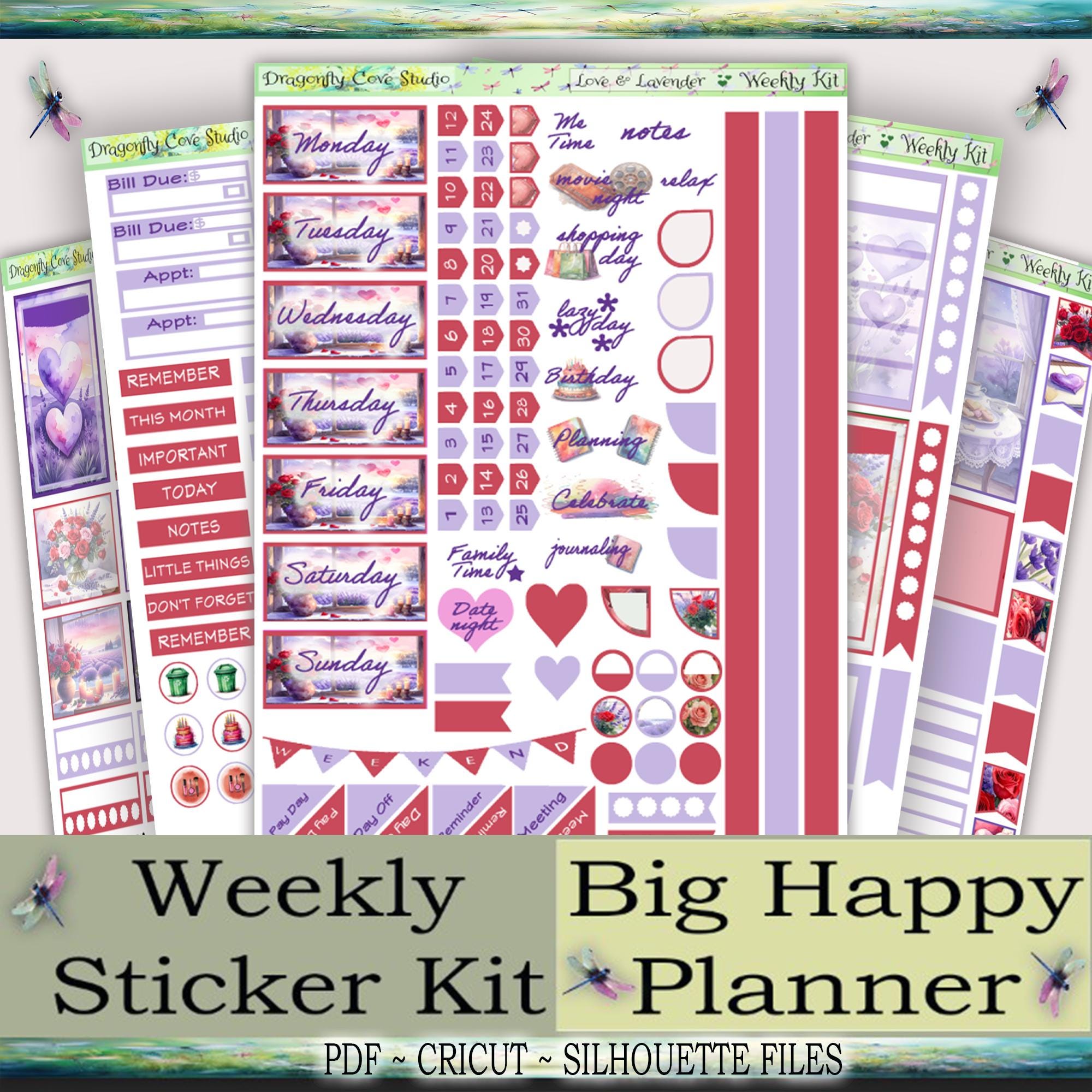 Big Happy Planner Weekly Printable Stickers Kit | Love & Lavender | Silhouette + Cricut Cut Files + PDF for Hand Cutting