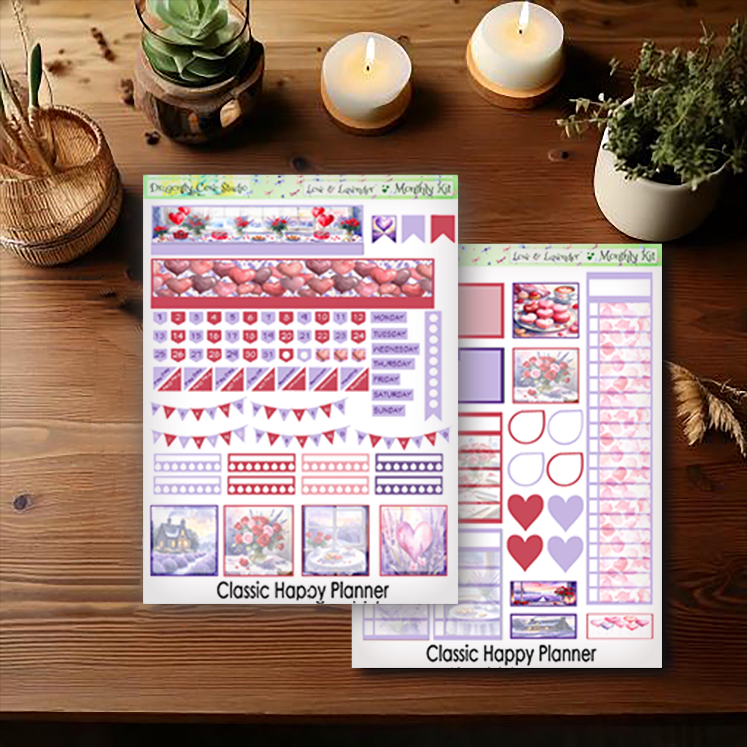 Classic Happy Planner Printable Stickers Monthly Kit | Love & Lavender | Silhouette + Cricut Cut Files + PDF