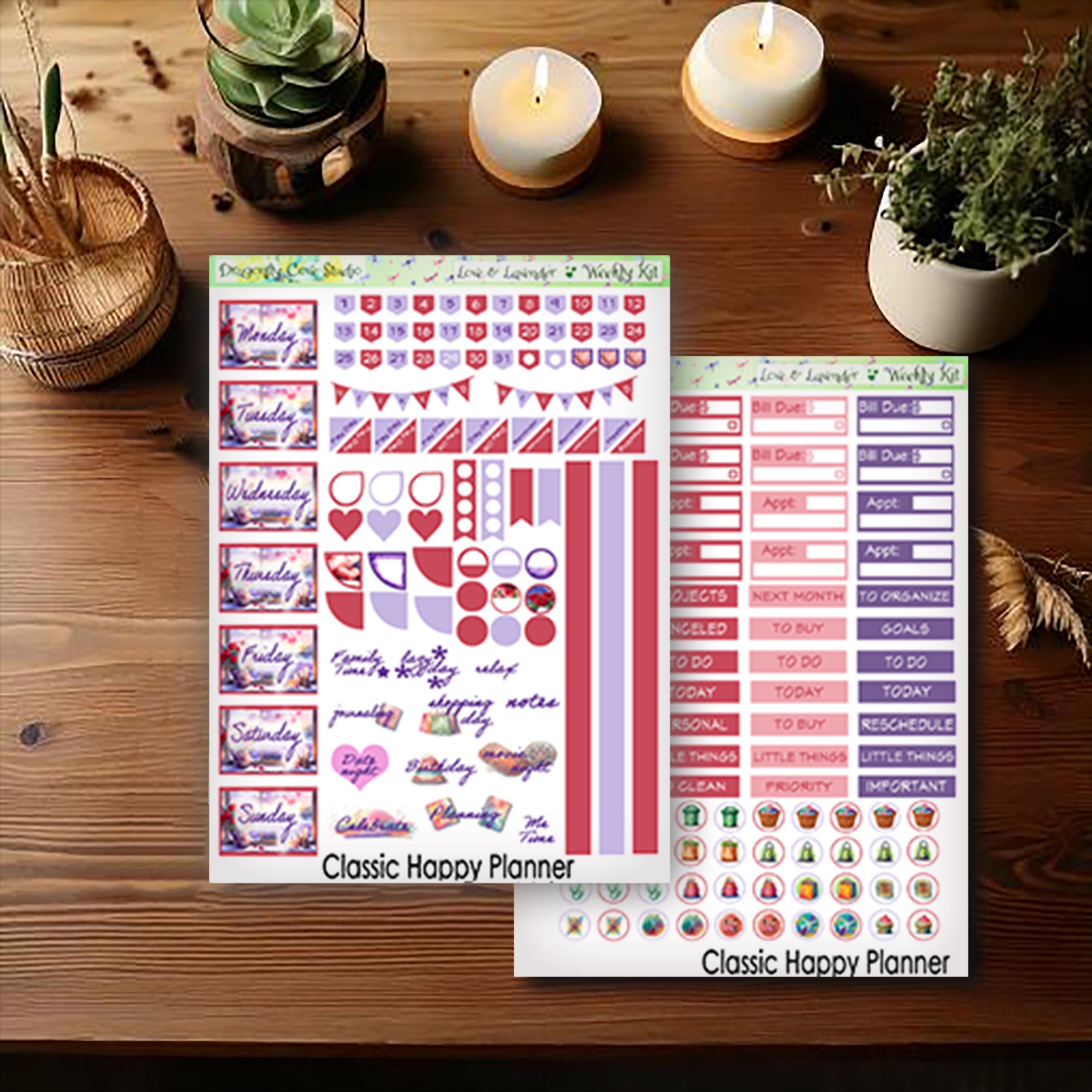Classic Happy Planner Printable Stickers Weekly Kit | Love & Lavender| Silhouette + Cricut Cut Files + PDF for Hand Cutting