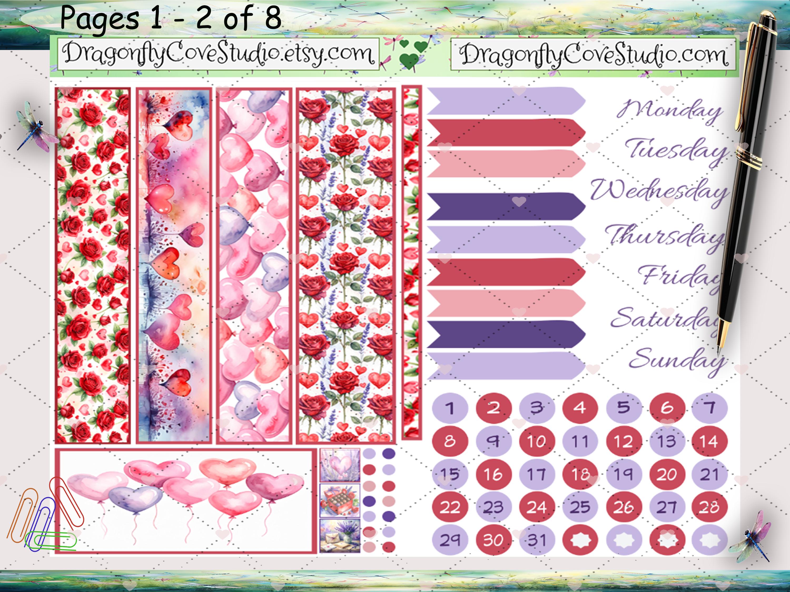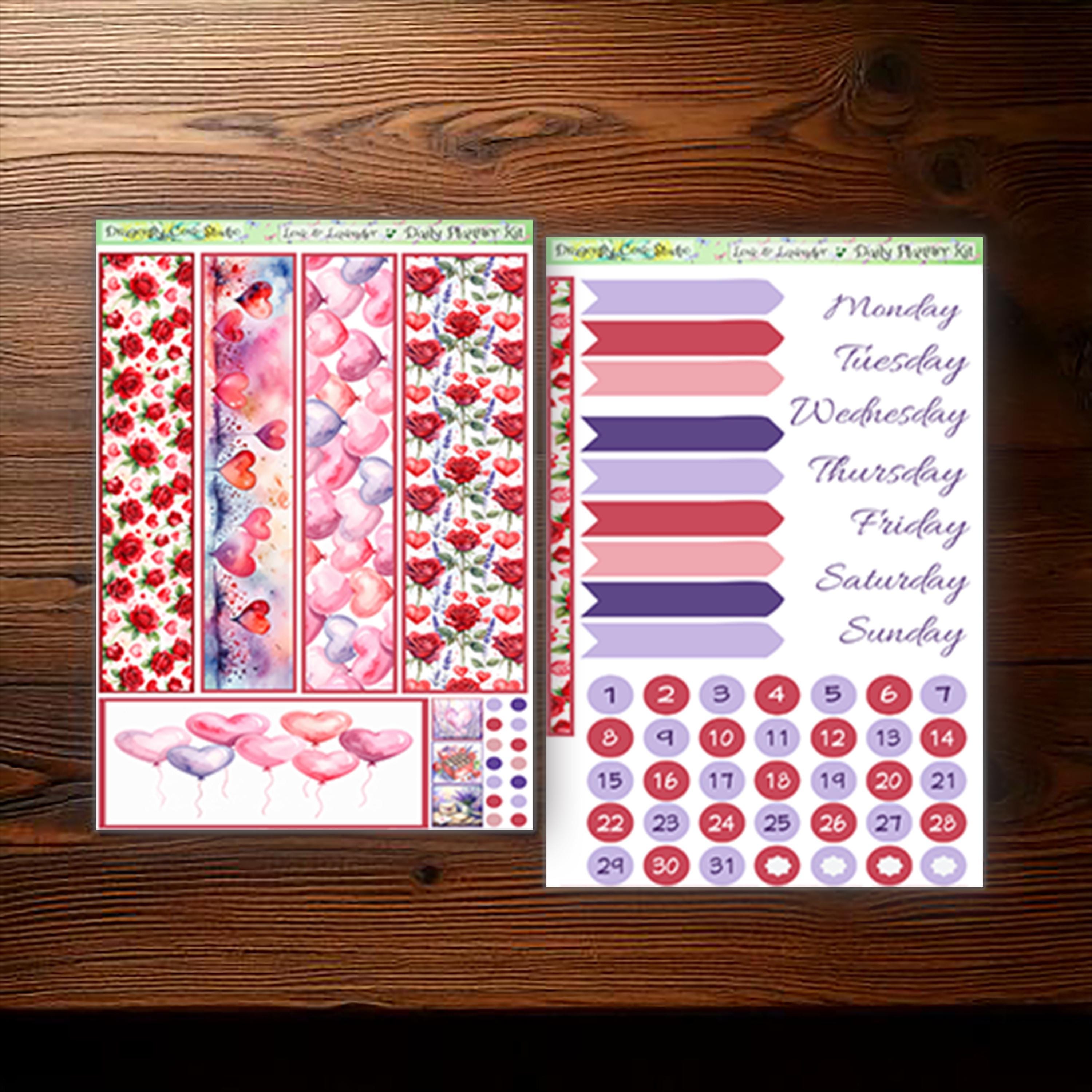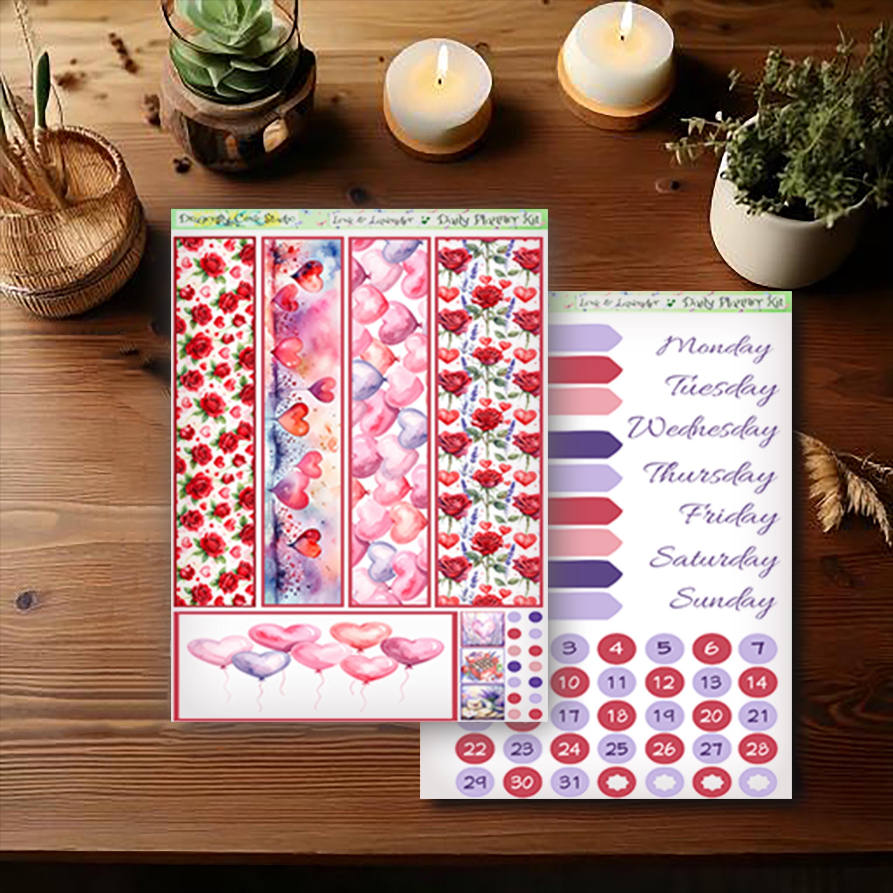 Erin Condren Petite Daily Planner Printable Stickers Kit: Love & Lavender (PDF, Cricut, Silhouette)