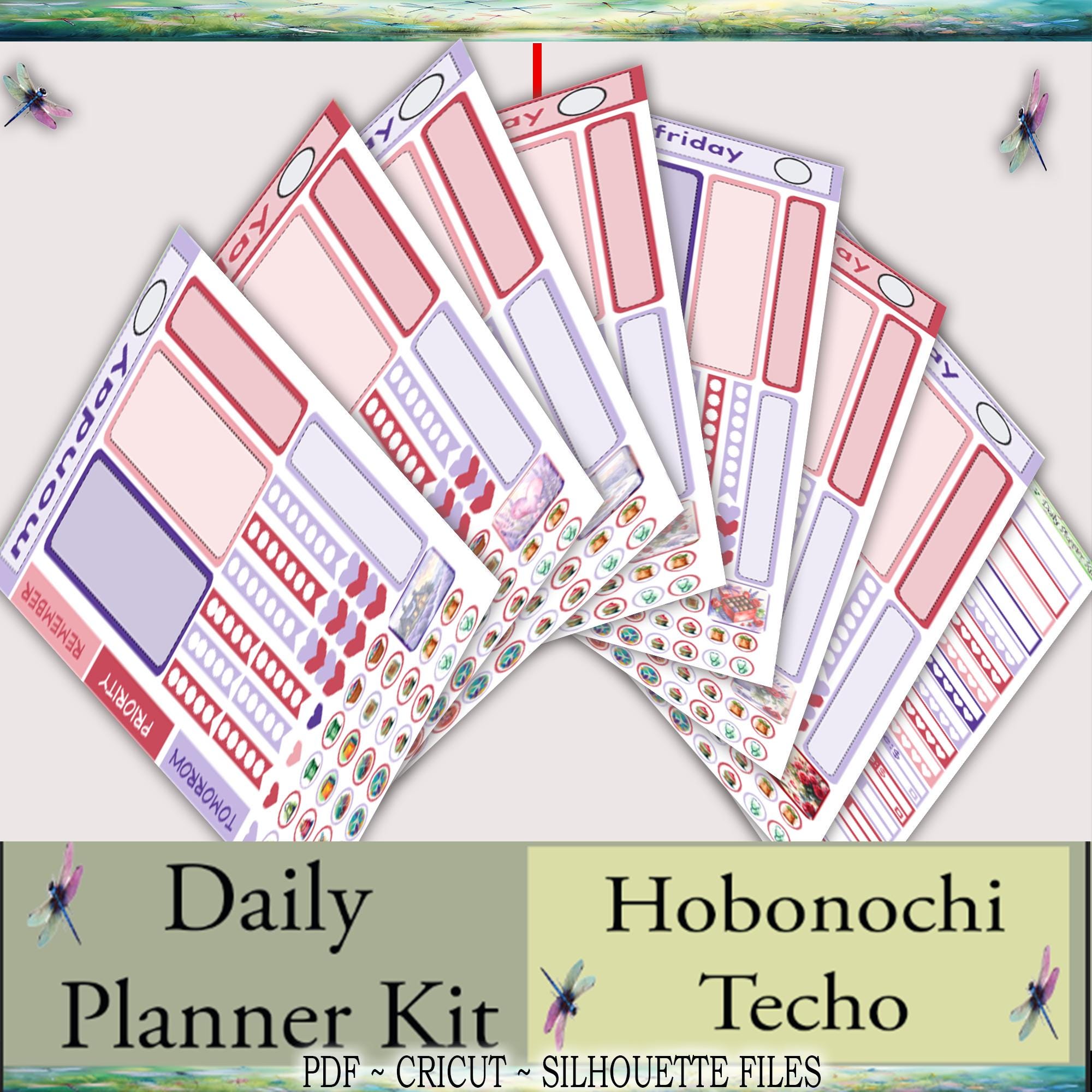 Hobonichi Techo Daily Planner Printable Stickers Kit: Love & Lavender (PDF, Cricut, Silhouette)