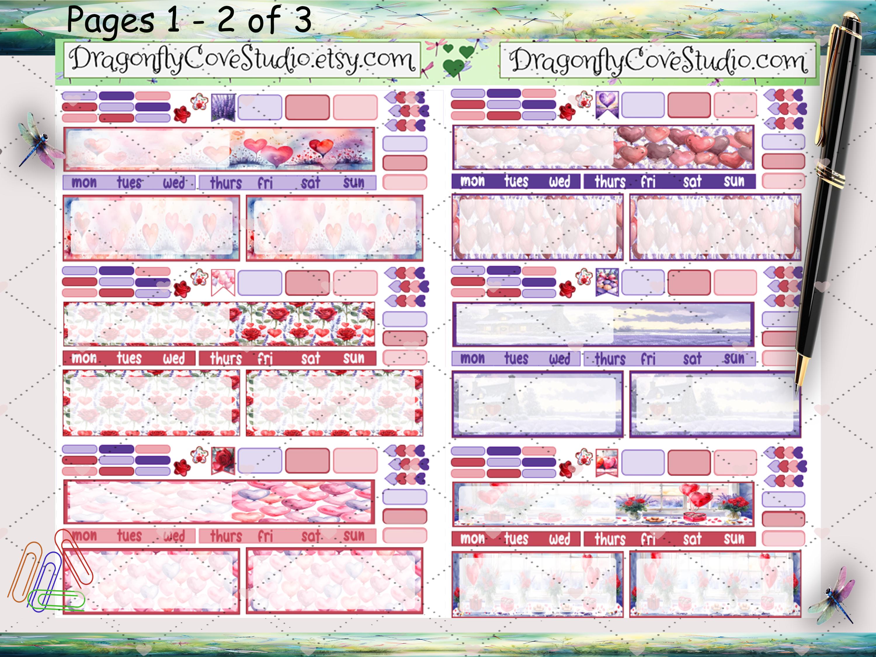 Hobonichi Mini Monthly Planner Printable Stickers Kit: Love & Lavender (PDF, Cricut, Silhouette)