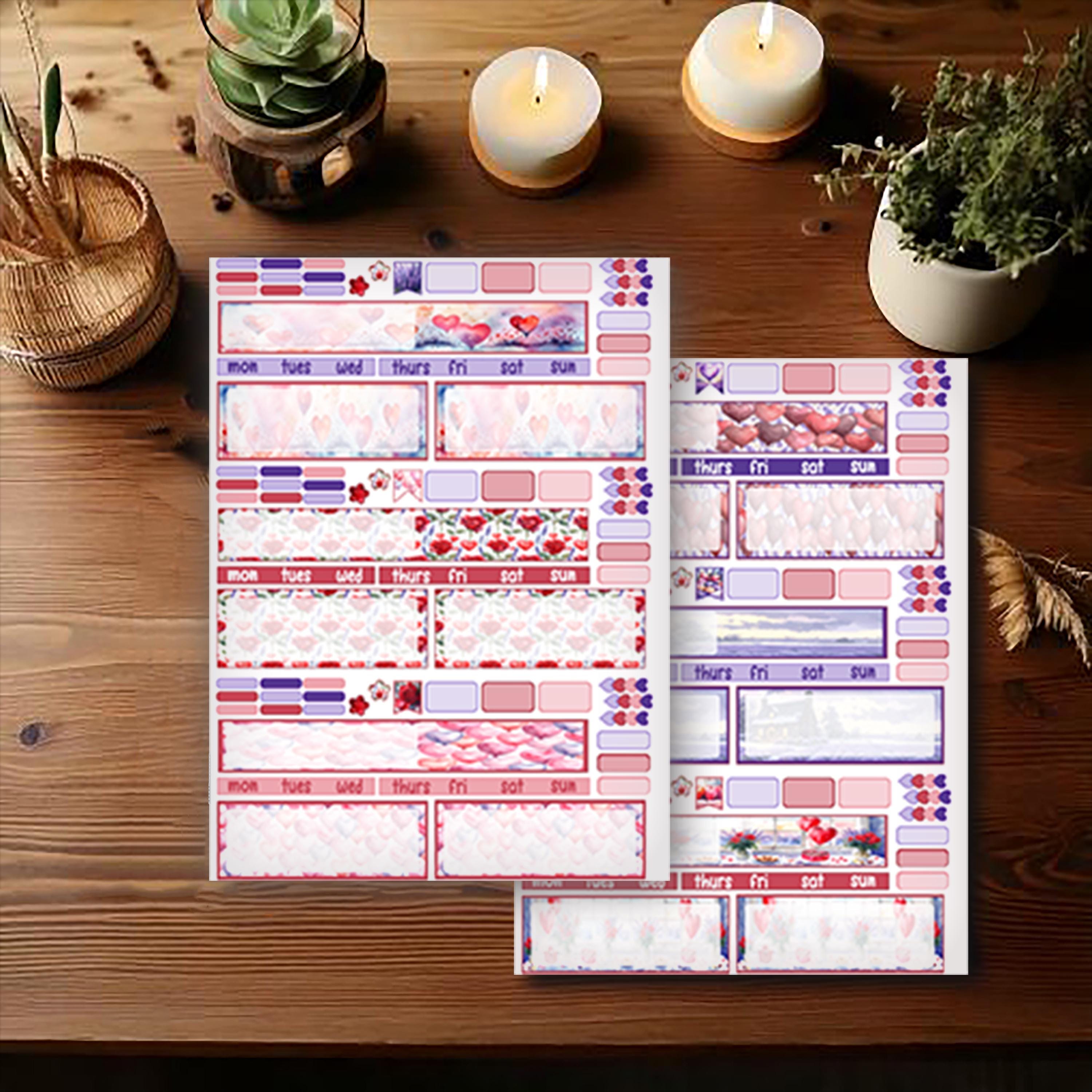 Sized specifically for Hobonichi Mini planners, this weekly kit supports day-to-day planning with clean, practical elements such as headers, boxes, and labels, paired with soft lavender florals and Valentine-inspired details. The balanced mix of function and decoration allows you to plan appointments, tasks, and priorities while still enjoying a cohesive, romantic aesthetic throughout your week.