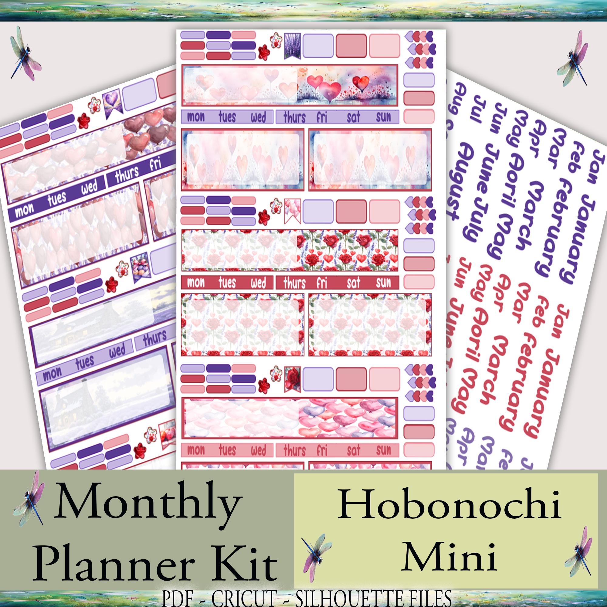 Hobonichi Mini Weekly Planner Printable Stickers Kit: Love & Lavender (PDF, Cricut, Silhouette)