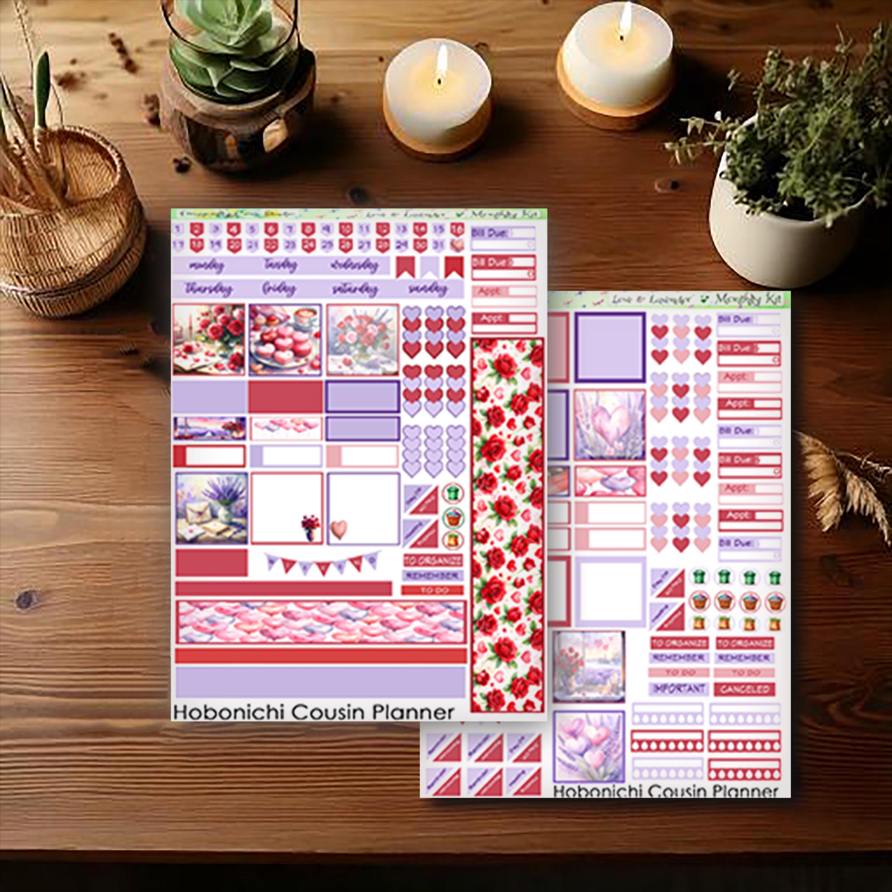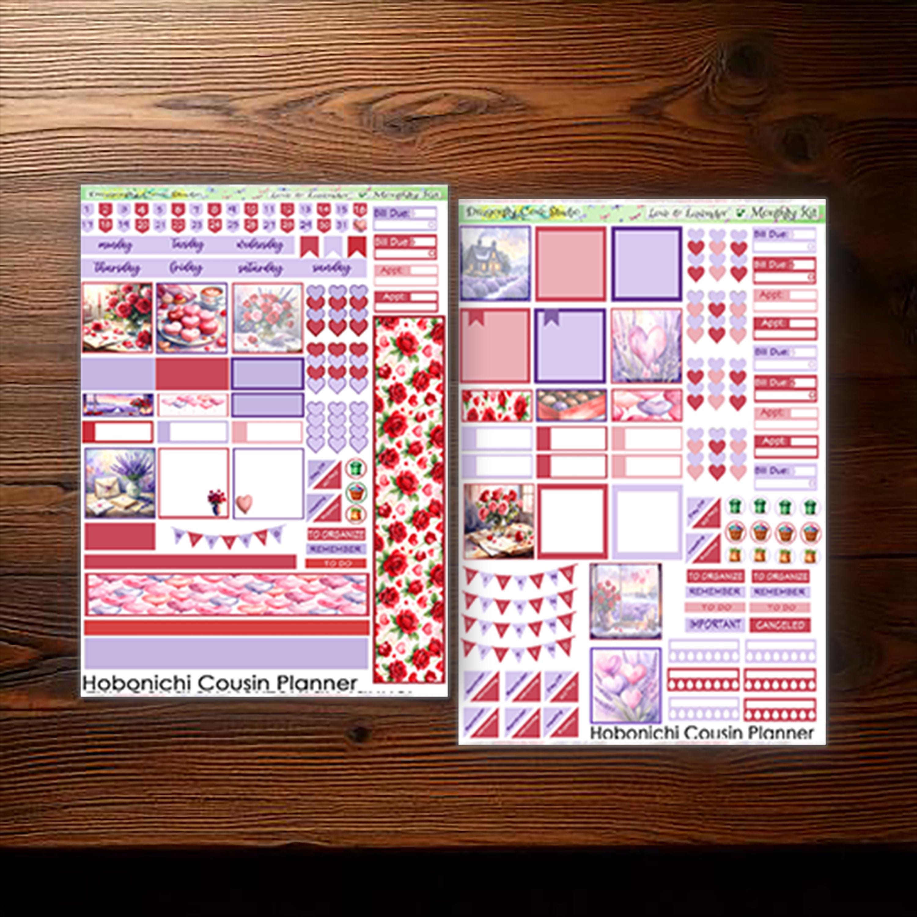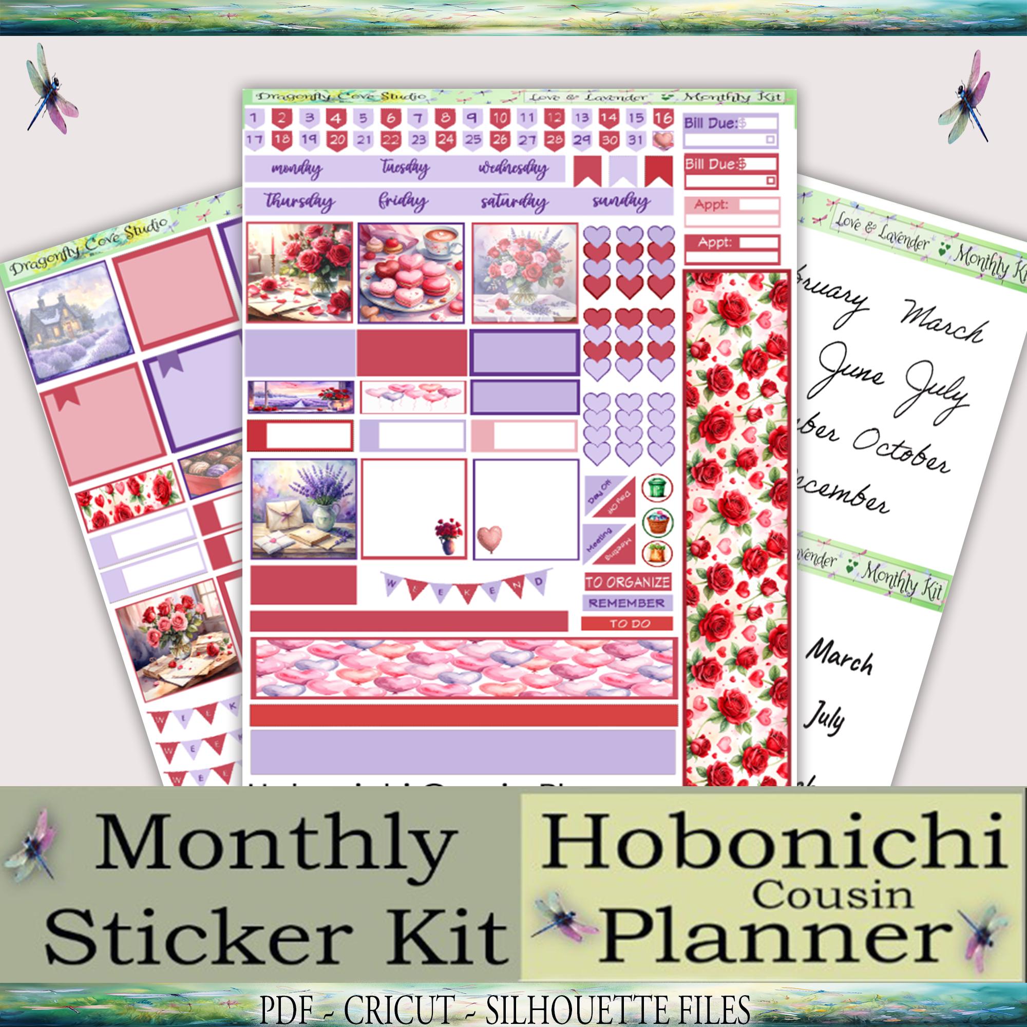 Hobonichi Cousin Monthly Planner Stickers: Love & Lavender (PDF, PNG, Silhouette)
