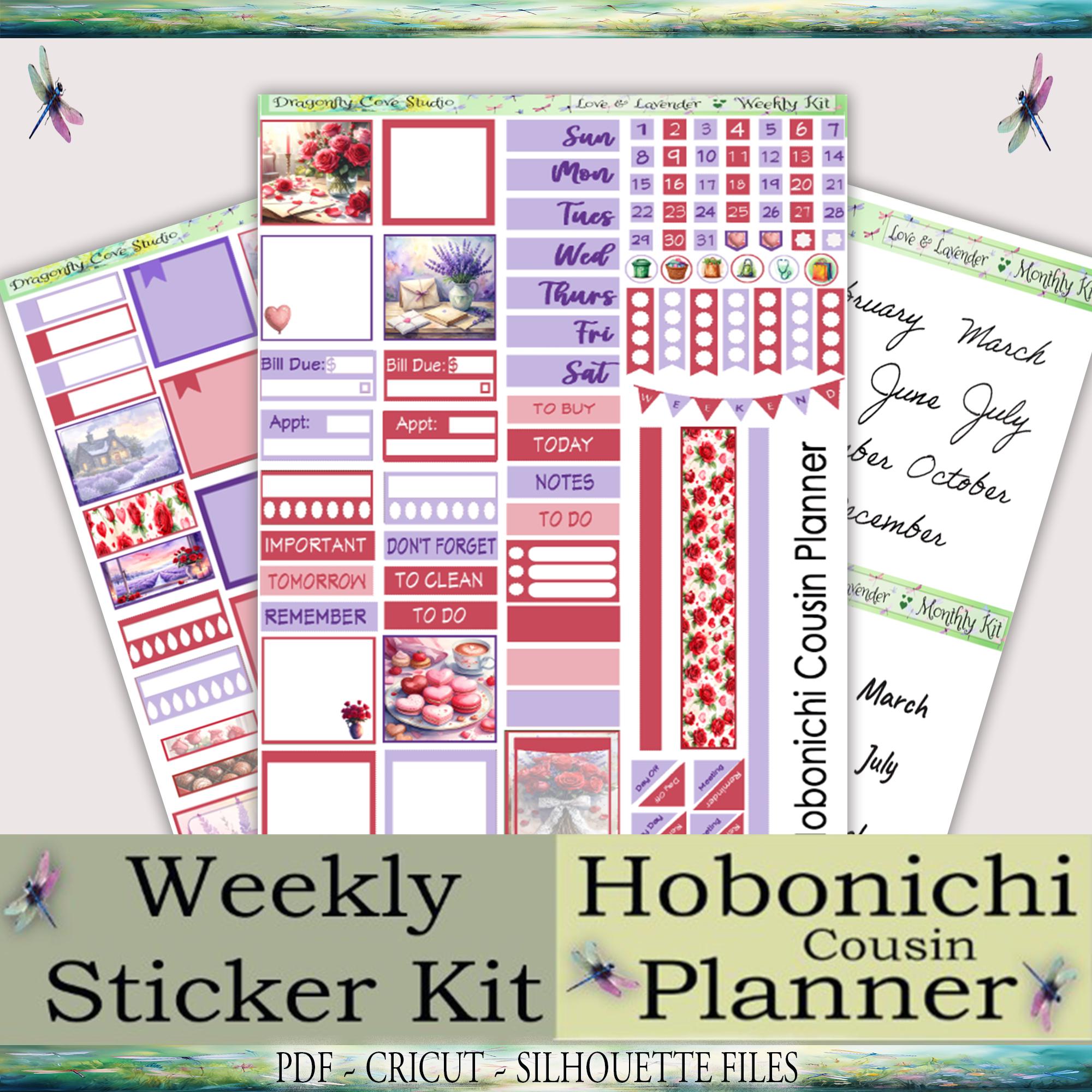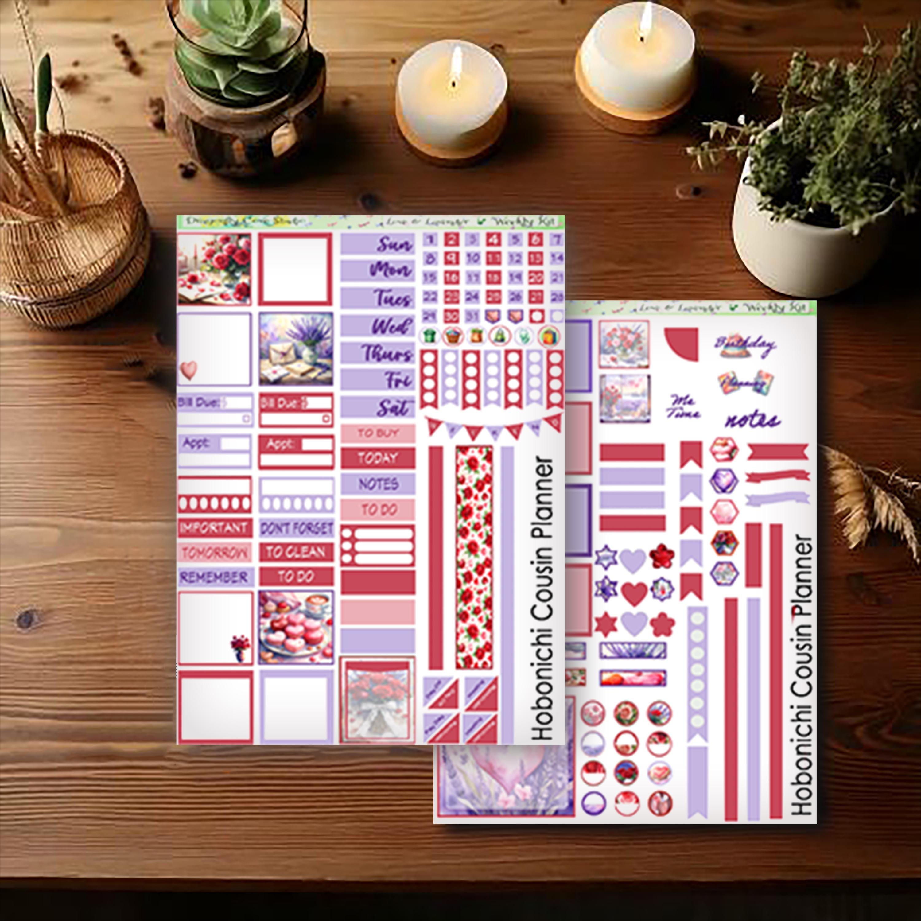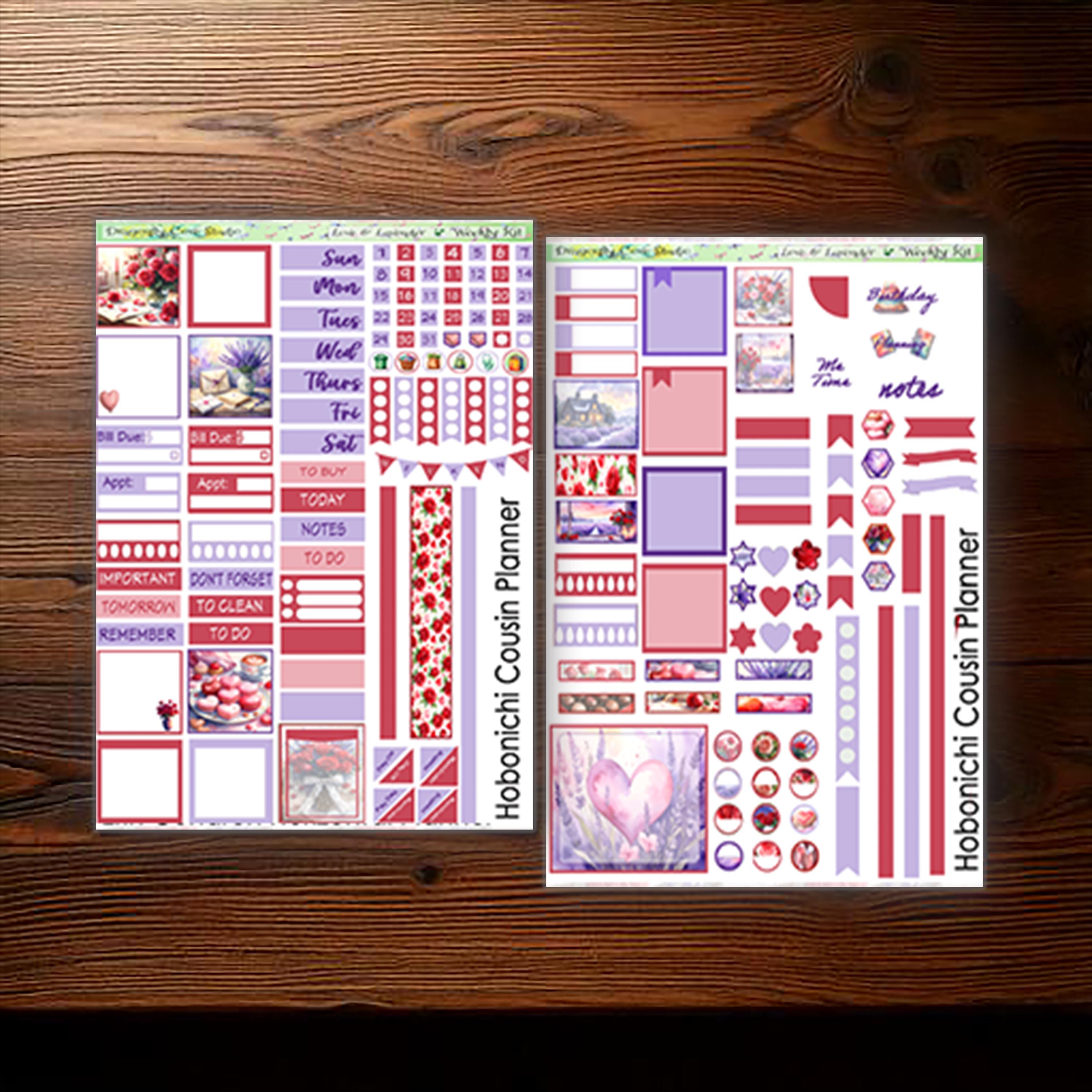 Hobonichi Cousin Weekly Planner Stickers: Love & Lavender (PDF, Cricut, Silhouette)