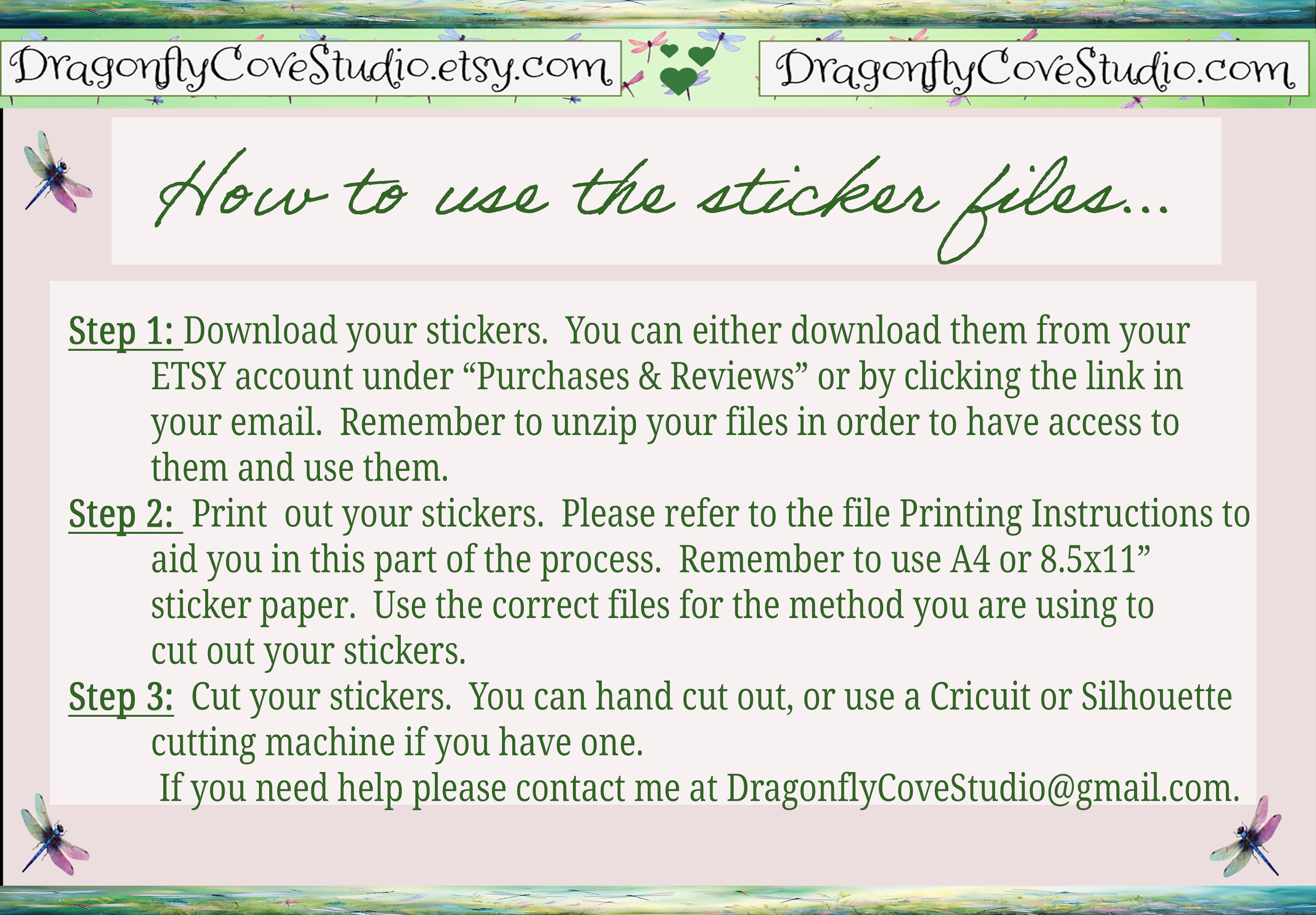 First and foremost, make sure that you are using A4 sticker paper or 8.5x11 inches full sheet labels. Make sure that your printer is set up to print on the entire sheet such as no borders. Please keep in mind that due to the many differences between computers, printers, ink, and papers you use, I will not take responsibility of any differences in color of printed stickers.