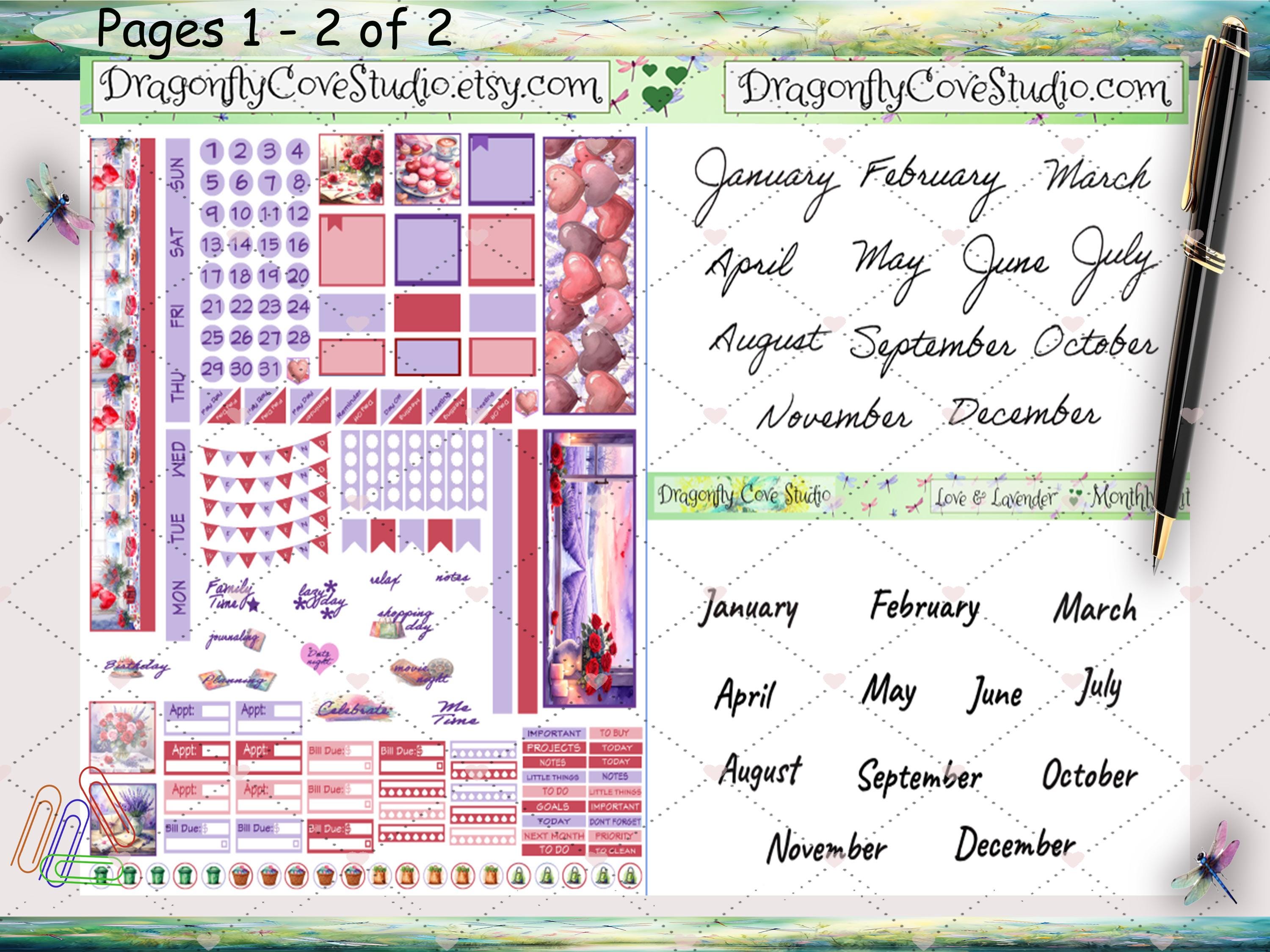 This monthly kit combines practical planning stickers with Love & Lavender decorative accents, making it easy to map out events, deadlines, and priorities while enjoying a cohesive lavender-inspired aesthetic. Clean labels, boxes, and calendar-friendly elements are paired with subtle florals and Valentine-inspired details to enhance your pages without overwhelming your monthly layout.