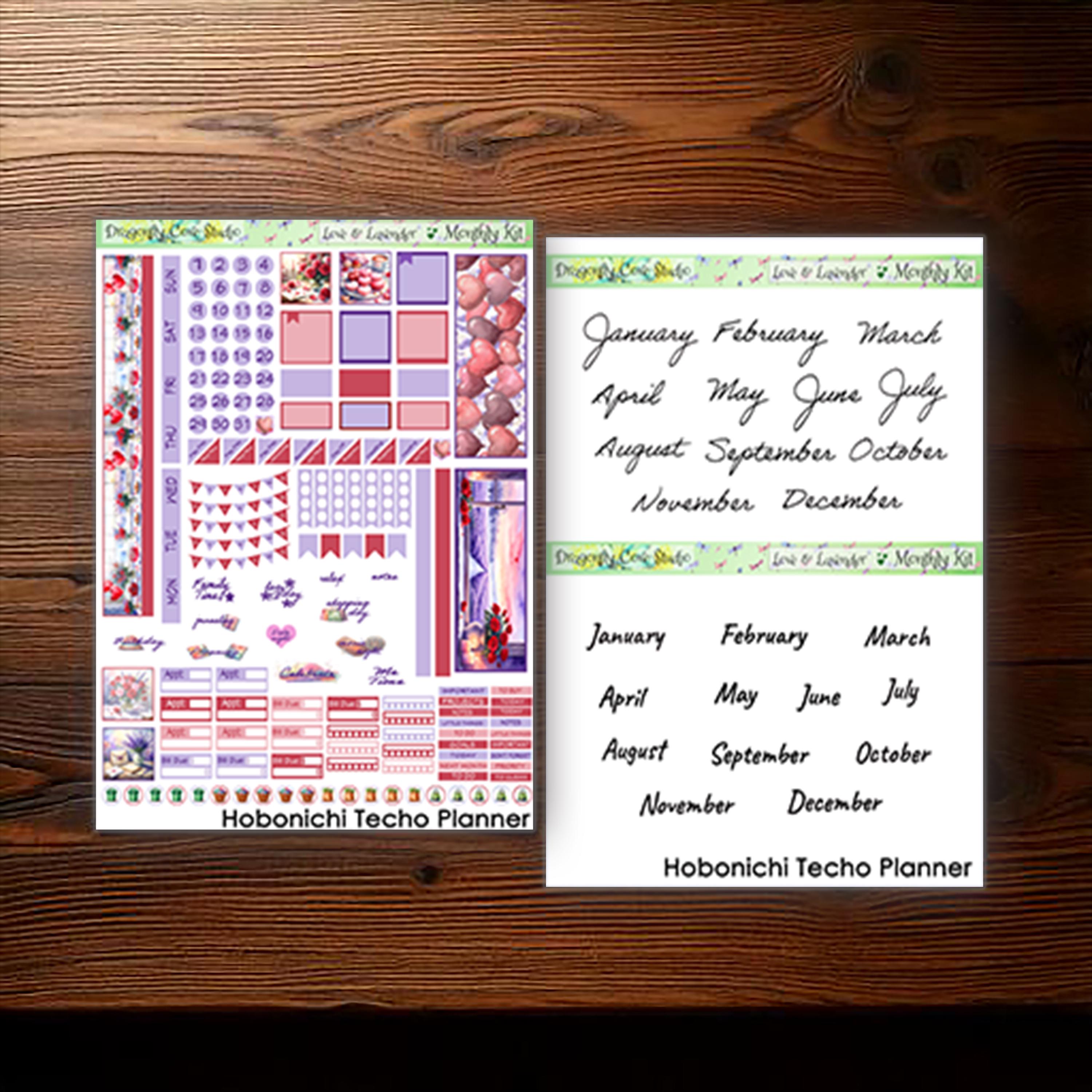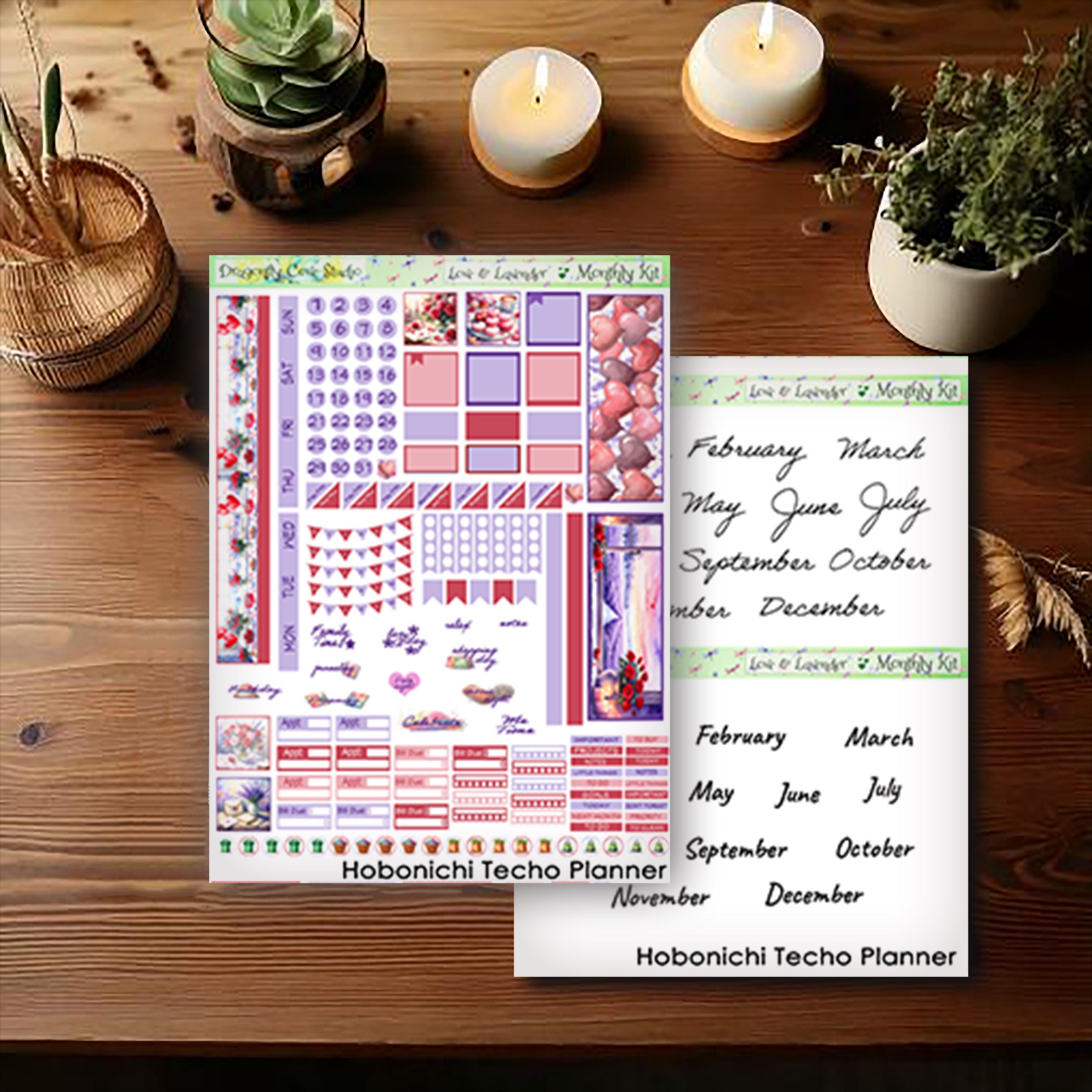 Love & Lavender – Hobonichi Techo Monthly Printable Stickers Kit
