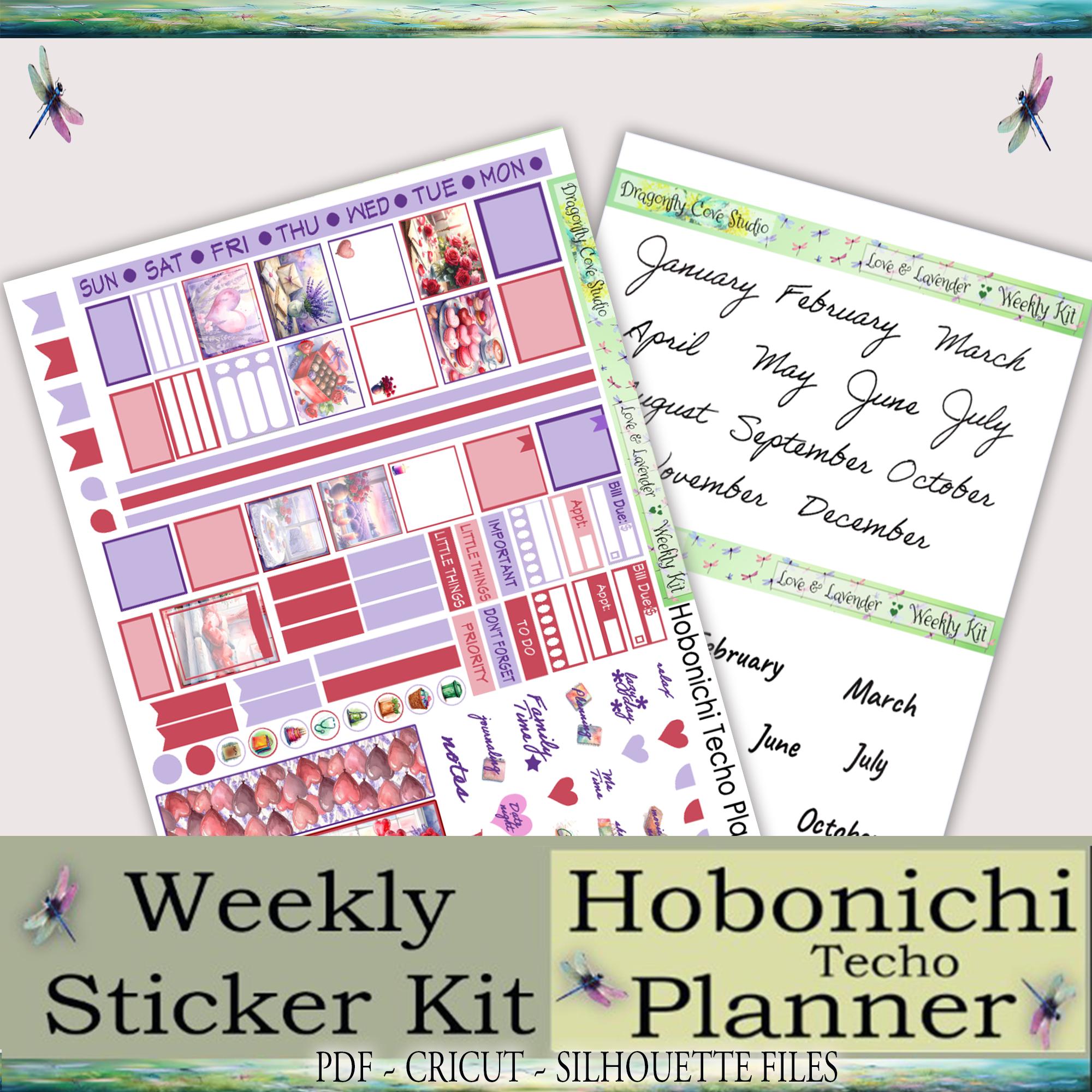 Hobonichi Techo Weekly Sticker Kit: Love & Lavender Valentine | Silhouette + Cricut + PDF