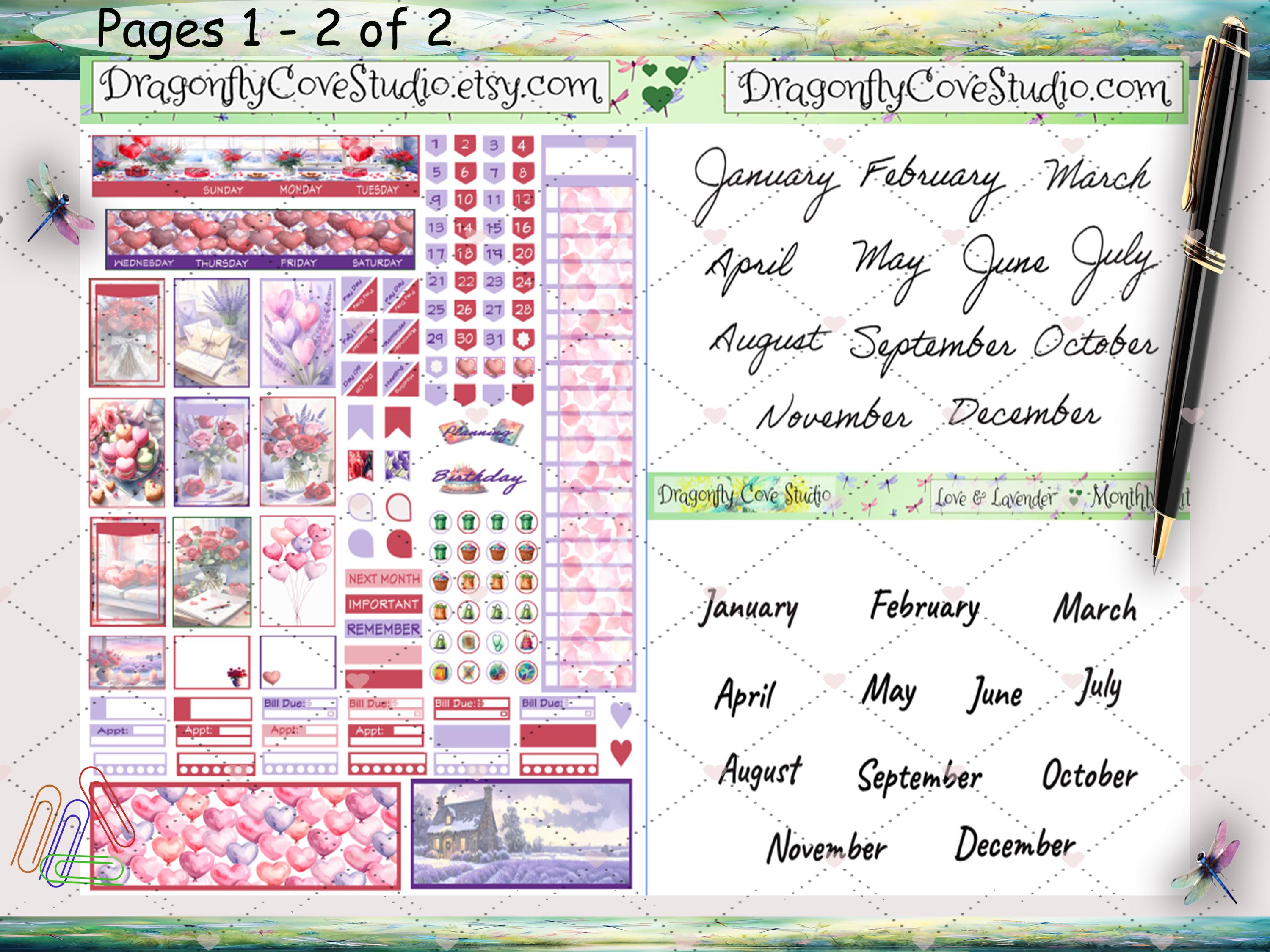 • Decorative stickers featuring Love & Lavender florals, hearts, and romantic accents 🌸💜