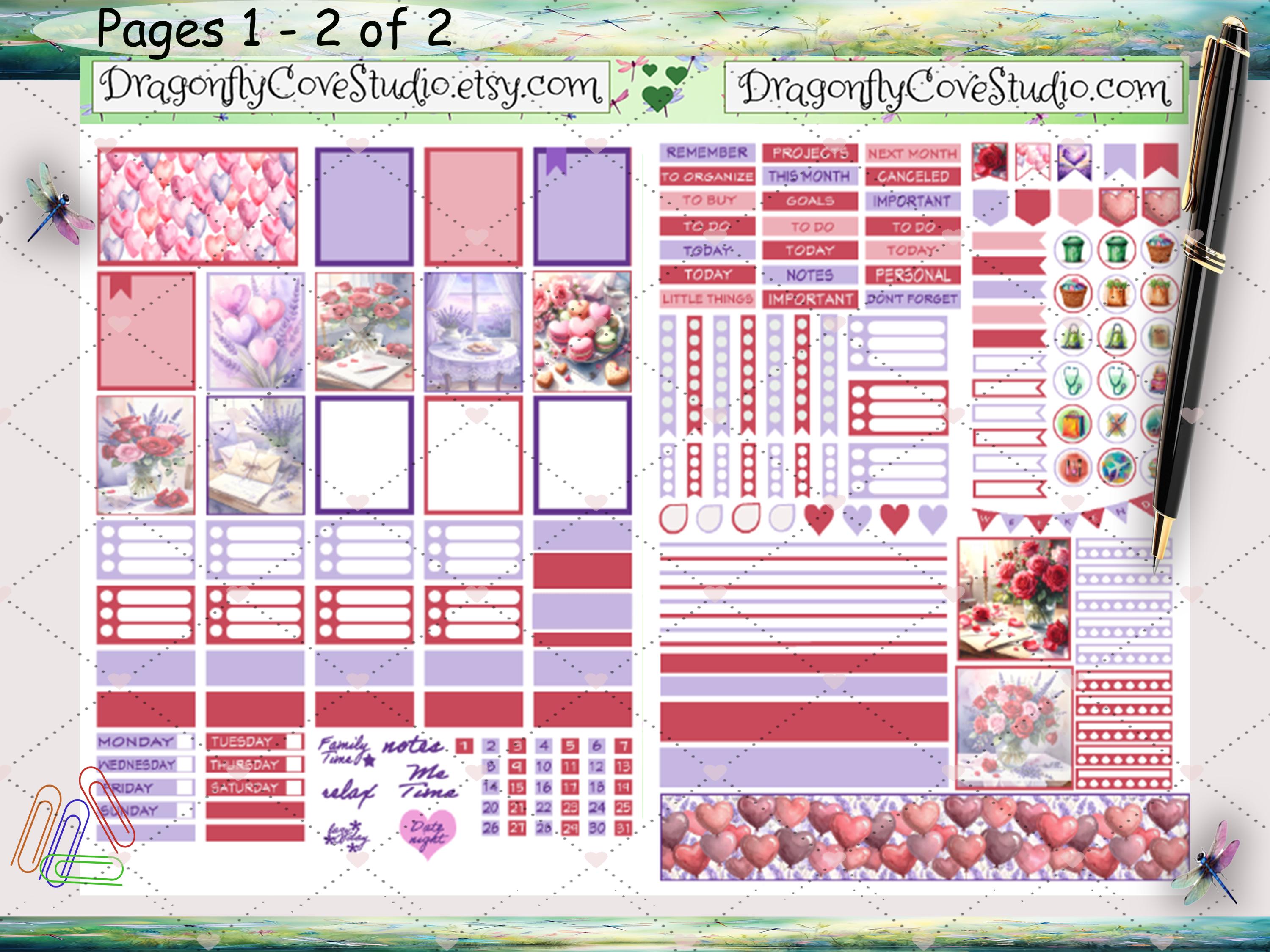 • Decorative stickers featuring Love & Lavender florals, hearts, and romantic accents 🌸💜