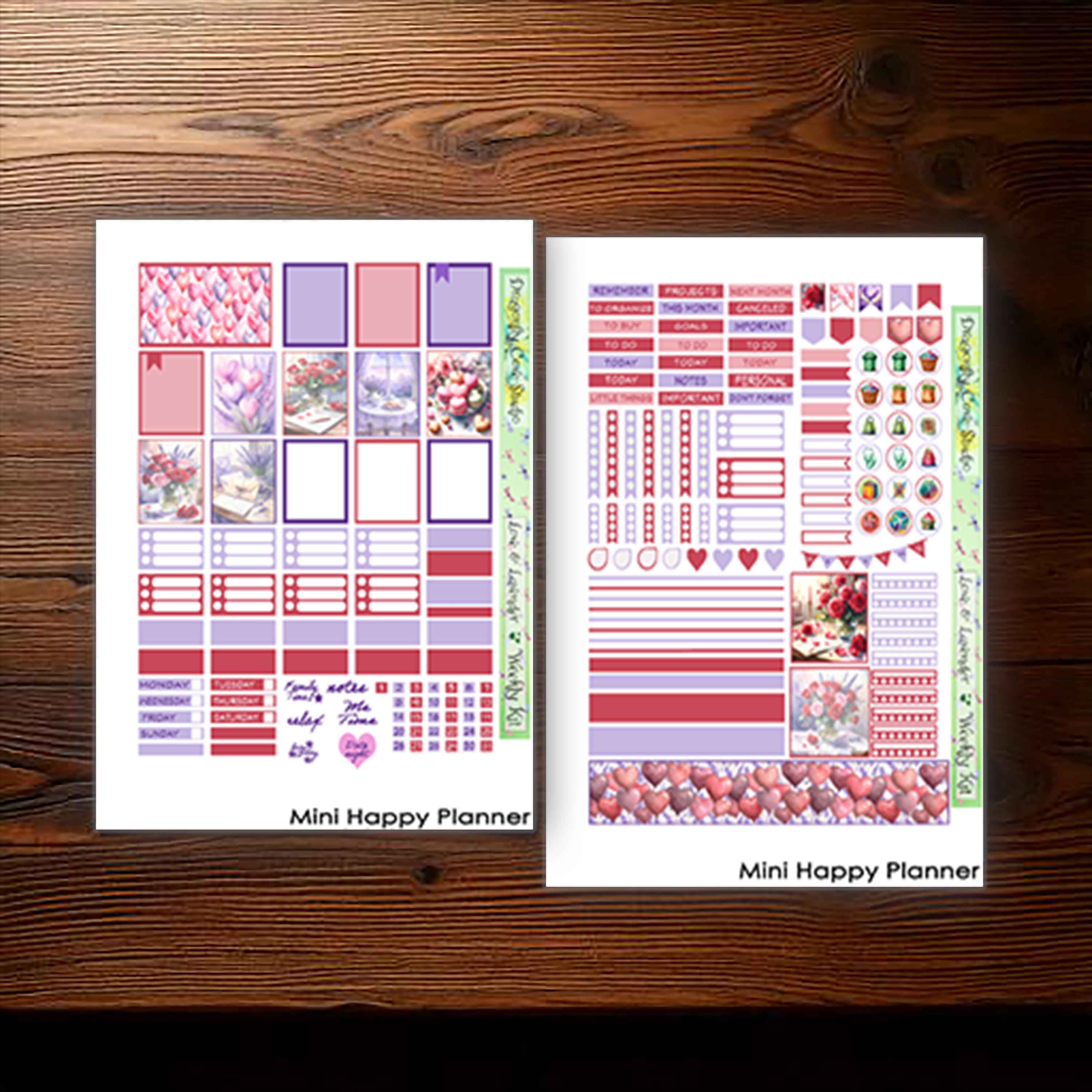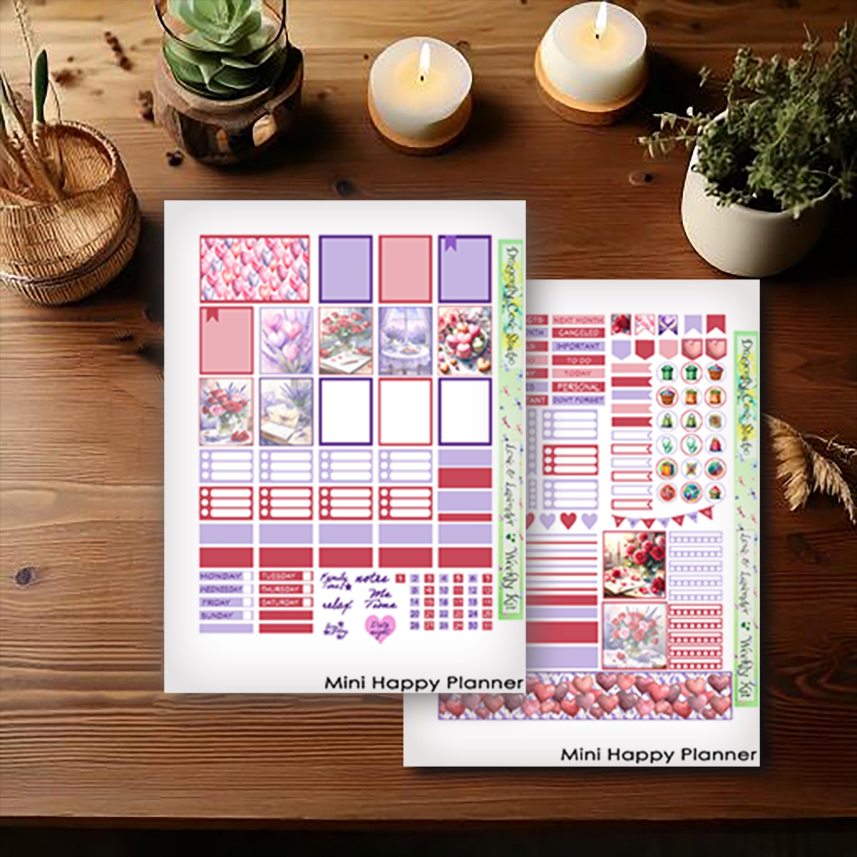 The Love & Lavender Mini Happy Planner Weekly Printable Stickers Kit is designed to bring romantic Valentine-inspired charm and functional structure to Mini Happy Planner weekly layouts 💕🌸 This kit blends practical weekly planning stickers with soft Love & Lavender decorative accents, helping you stay organized while adding warmth and beauty to your pages.