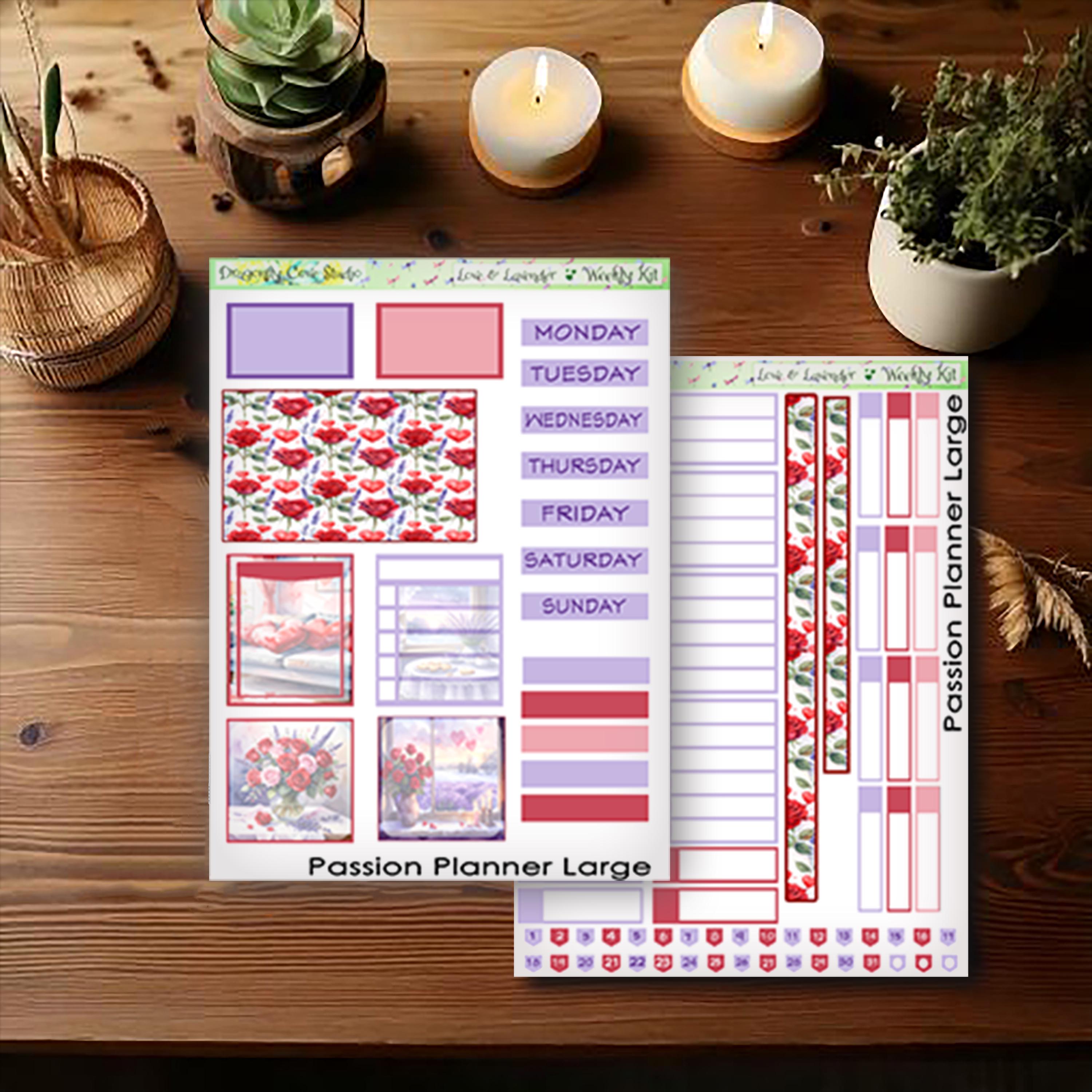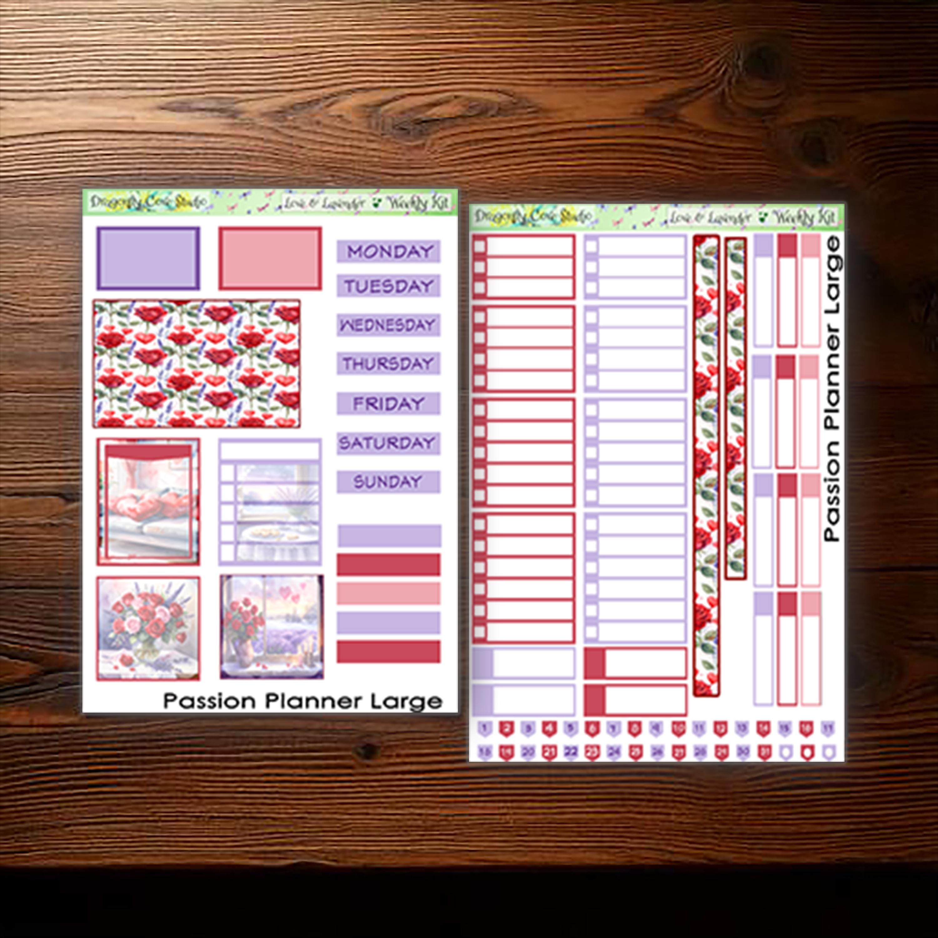 Passion Planner Large | Weekly Kit | Printable Love & Lavender Stickers for Cricut, Silhouette, PDF Cutting