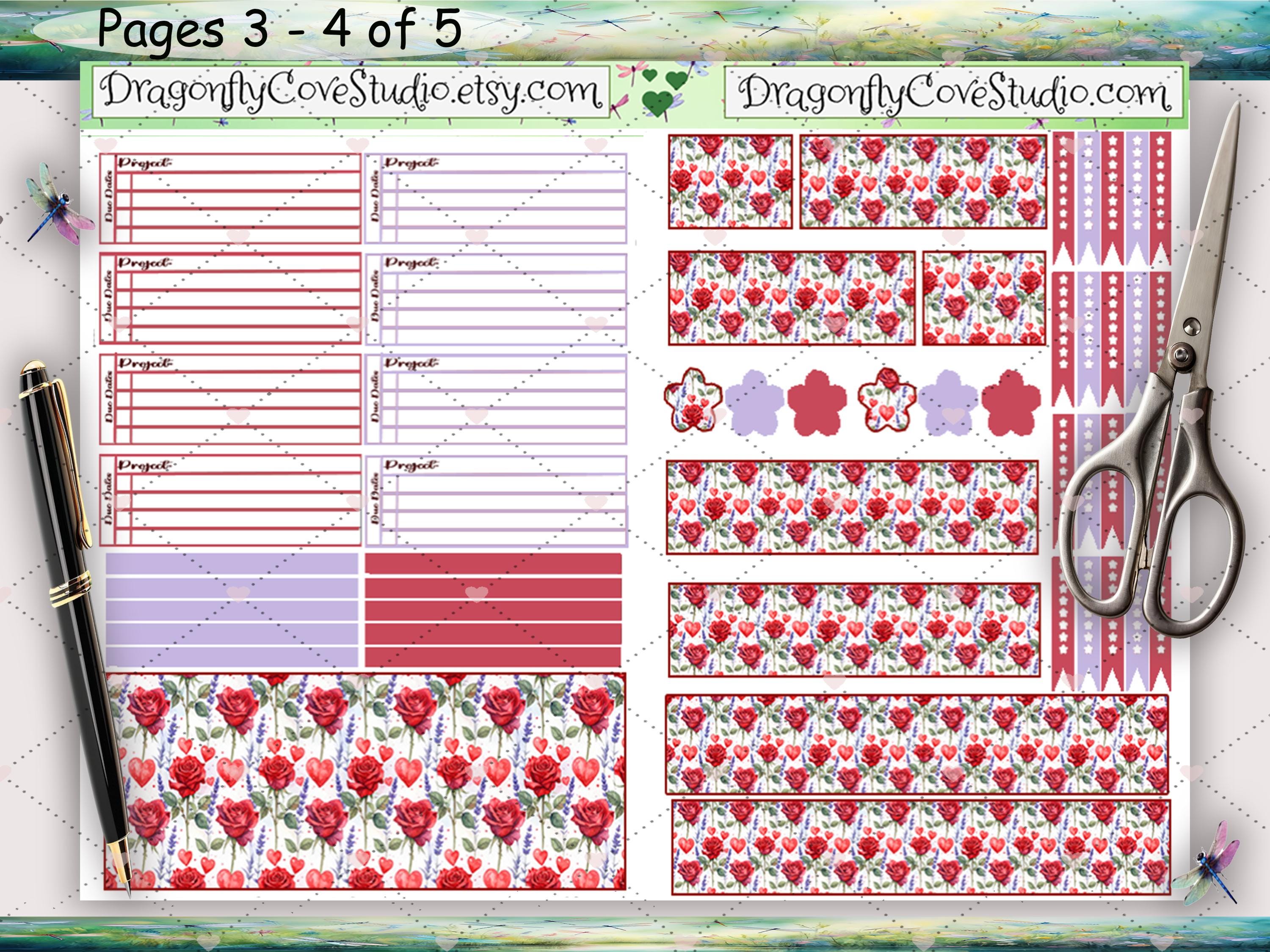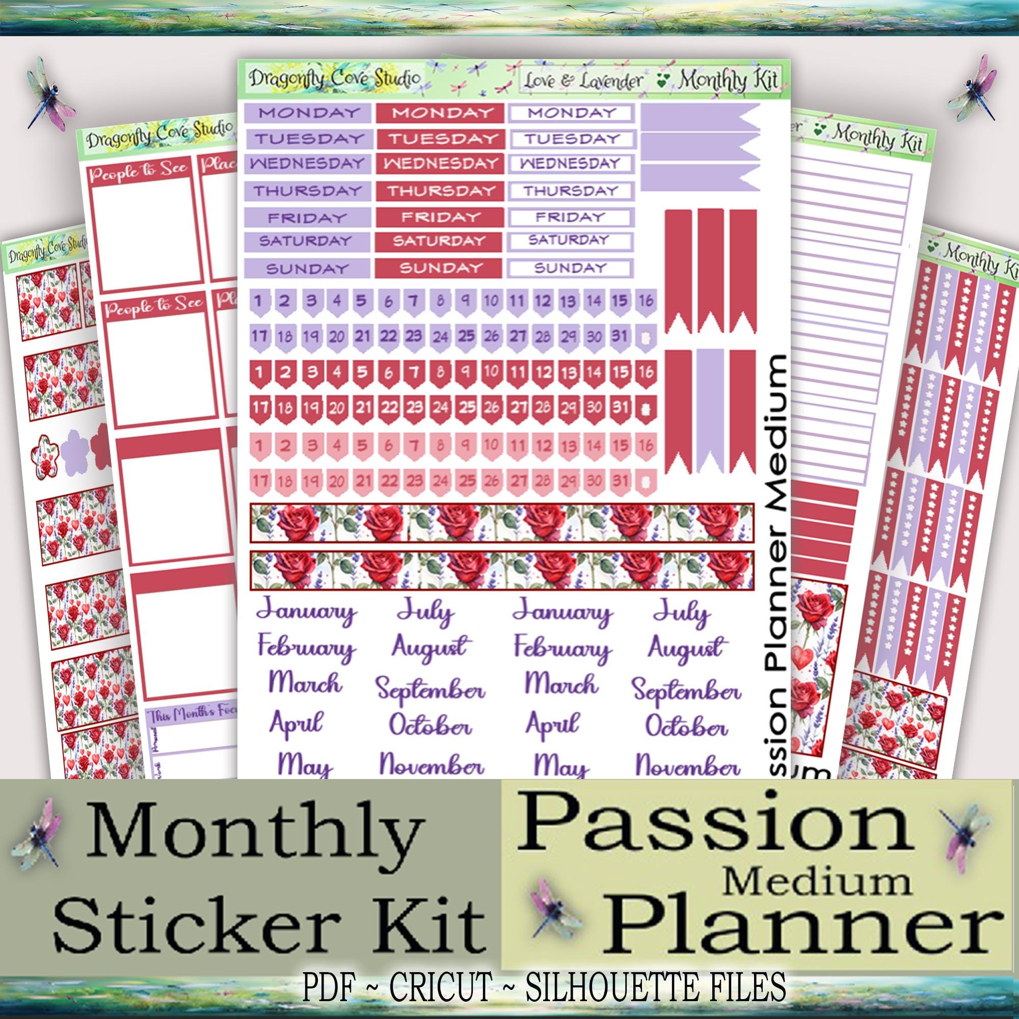 Passion Planner Medium | Monthly Kit | Printable Love & Lavender Valentine Stickers | Cricut, Silhouette, PDF Cutting