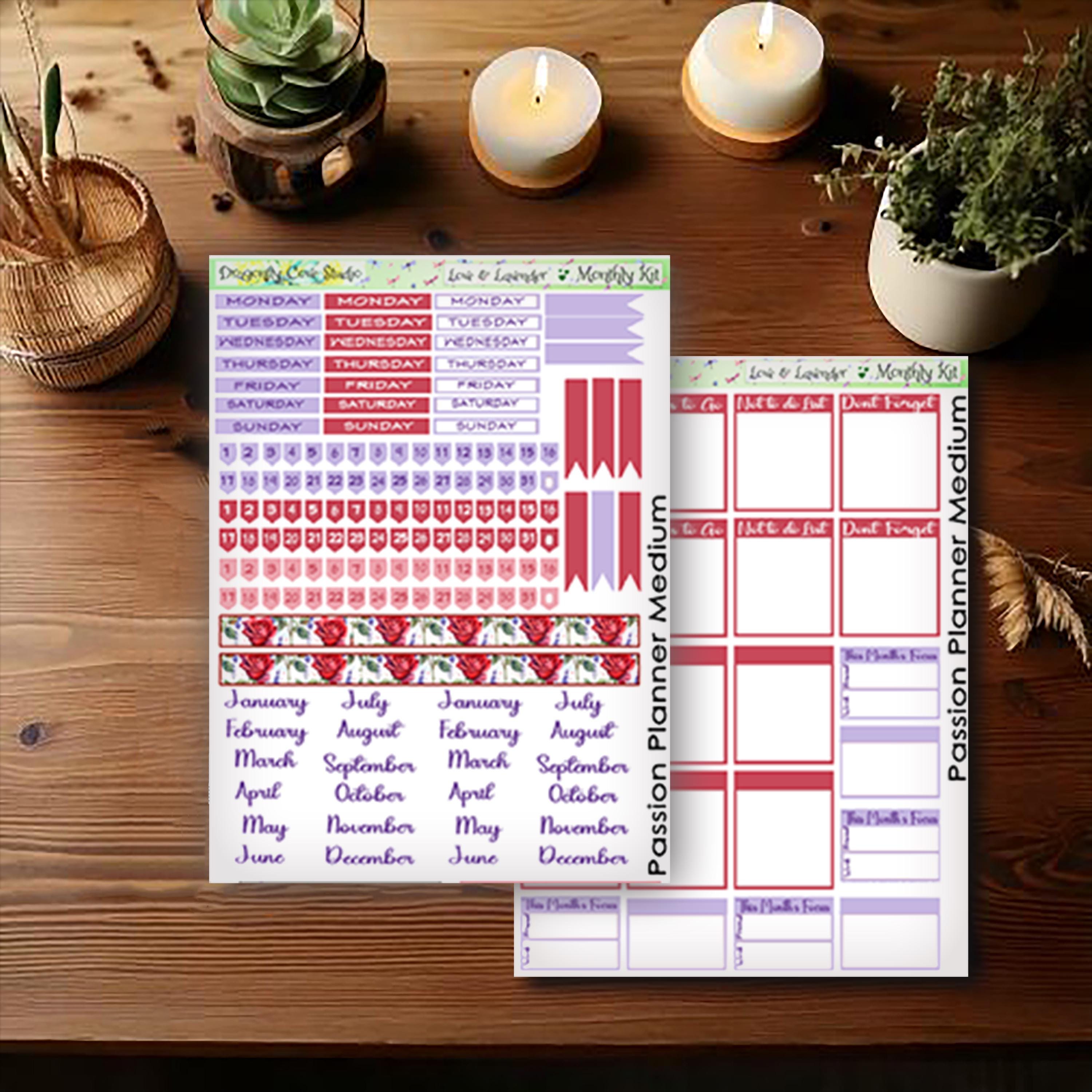 The Love & Lavender Passion Planner Medium Monthly Printable Stickers Kit is designed for planners who want clear monthly structure with flexibility 💕🌸 This kit blends functional monthly planning stickers with soft Love & Lavender decorative accents, supporting intentional planning without overwhelming a medium-sized layout.
