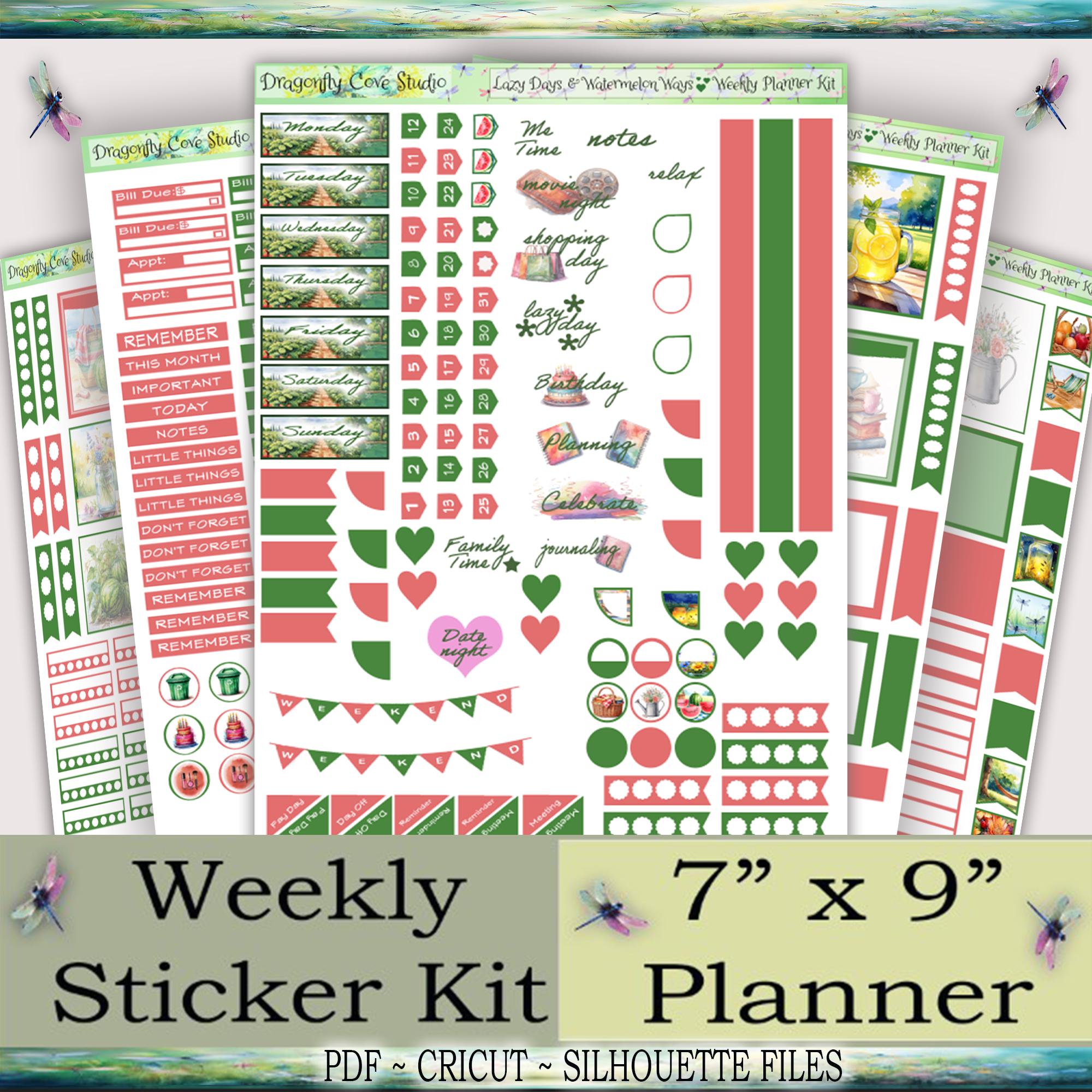 7 x 9 Weekly Sticker Kit | Lazy Days & Watermelon Ways | Silhouette, Cricut, PDF Files for Hand Cutting