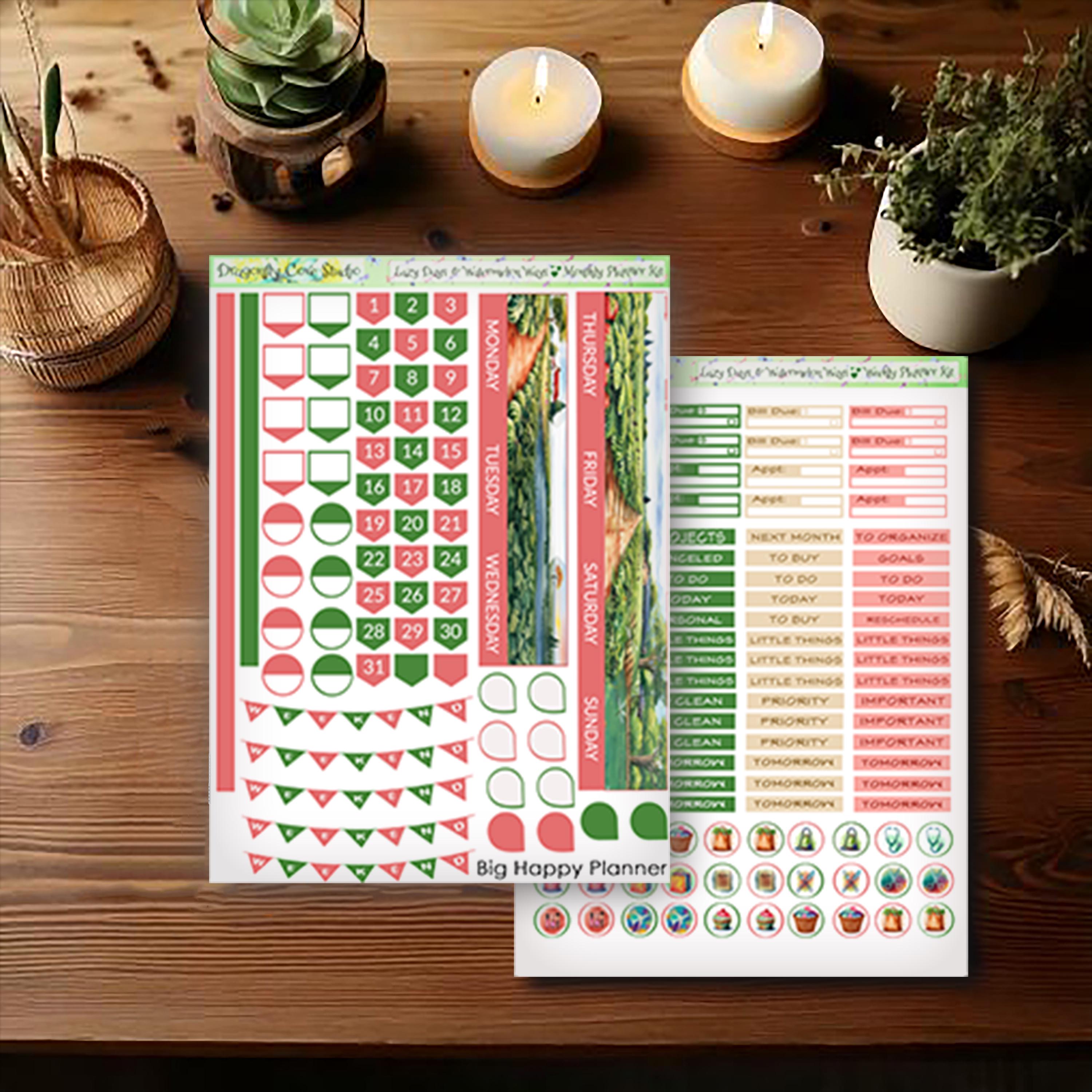 Plan your month with more space and intention using the Lazy Days & Watermelon Ways Big Happy Planner Monthly Sticker Kit 🍉☀️ This printed and shipped kit is designed for Big Happy Planner layouts, giving you room to organize your schedule while keeping a relaxed summer atmosphere.