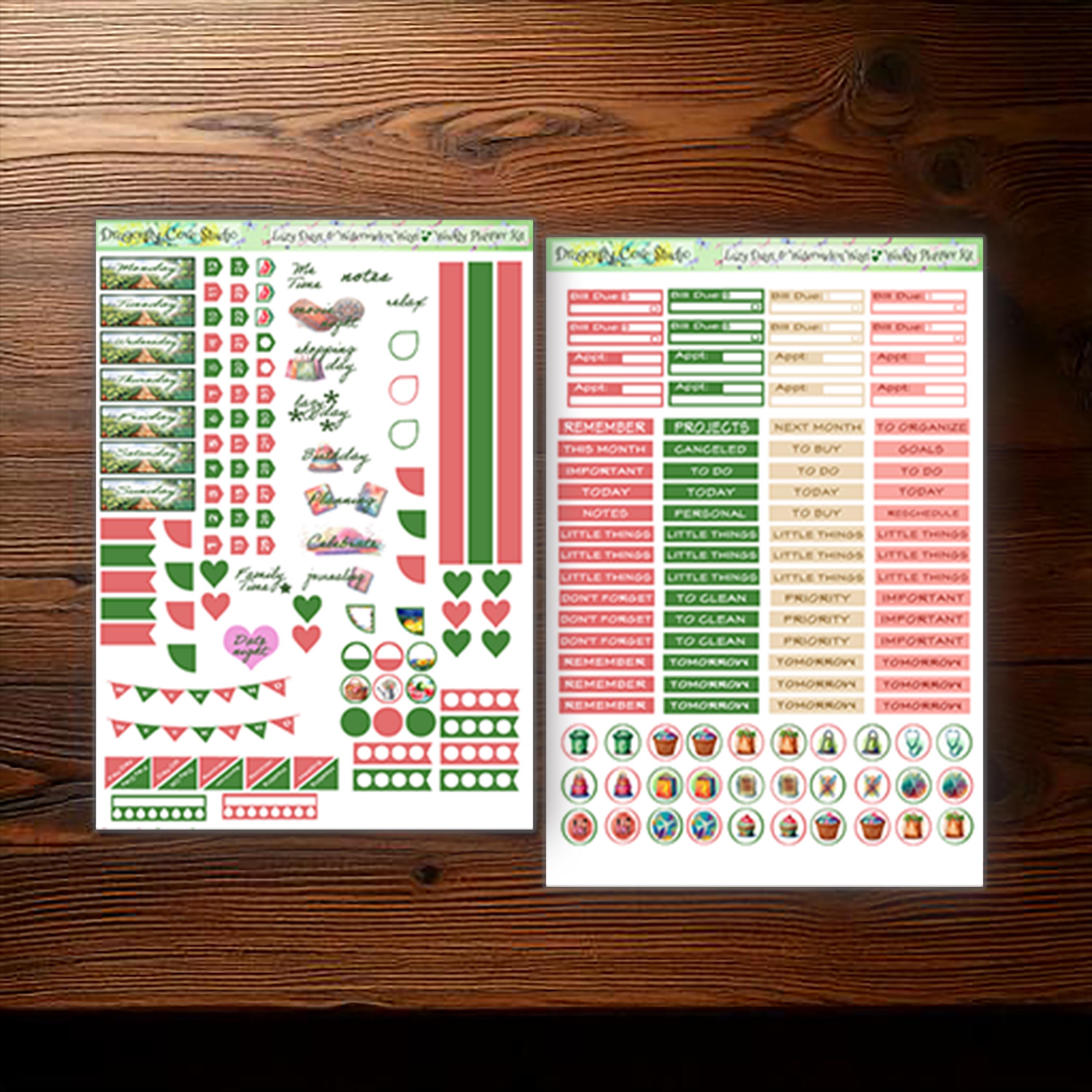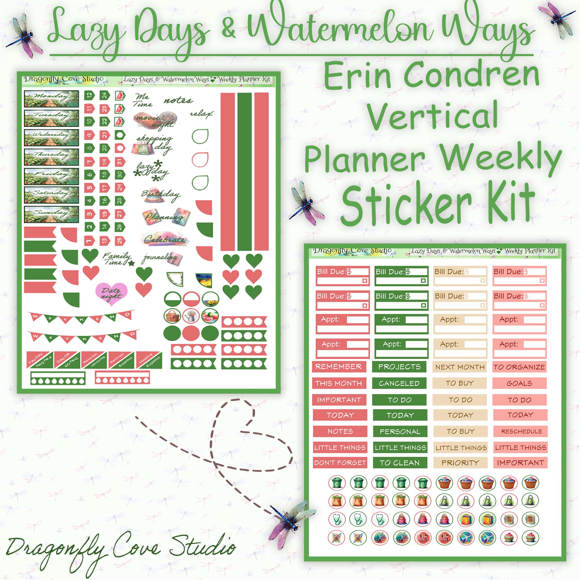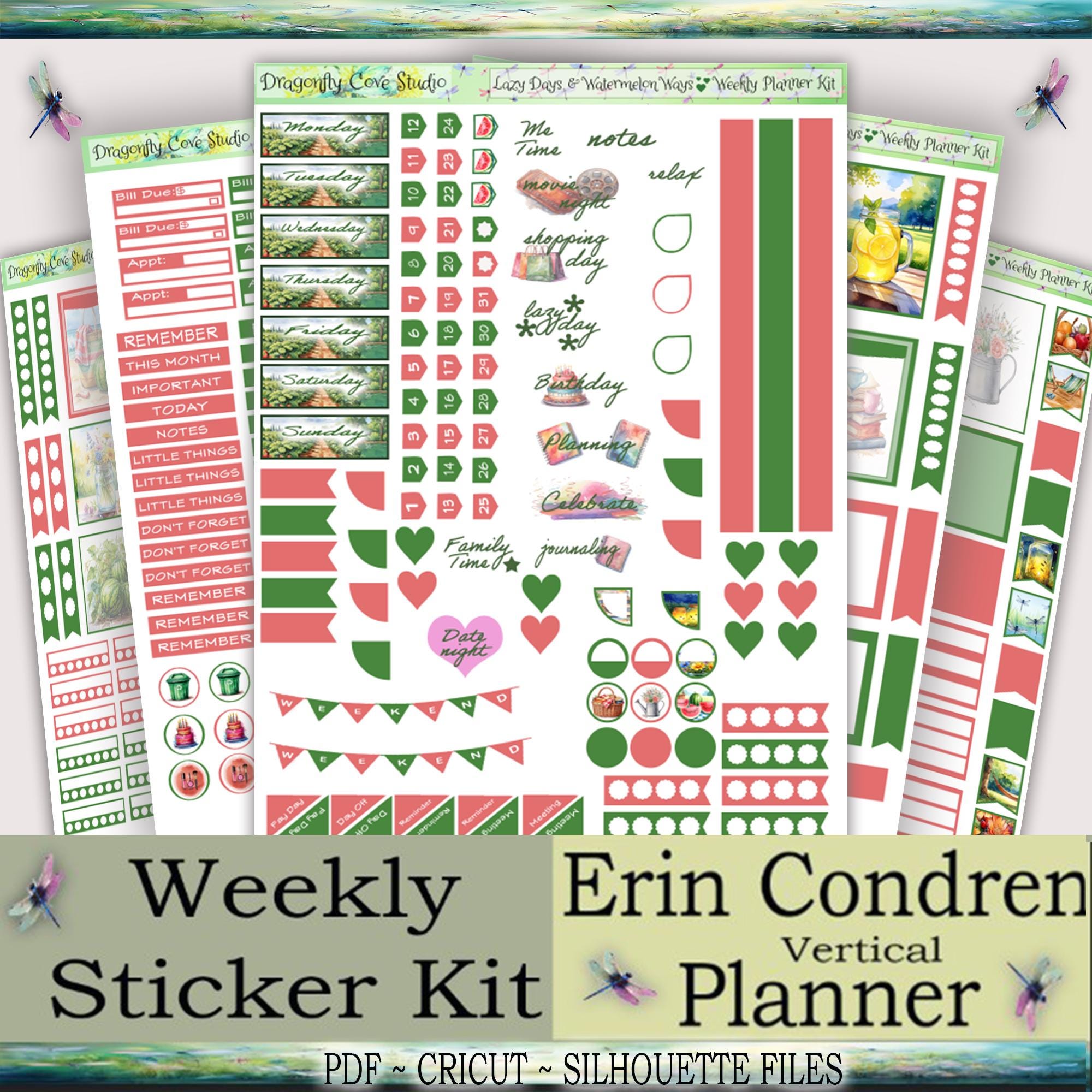 Erin Condren Vertical Weekly Kit | Lazy Days & Watermelon Ways | Silhouette + Cricut Cut Files + PDF