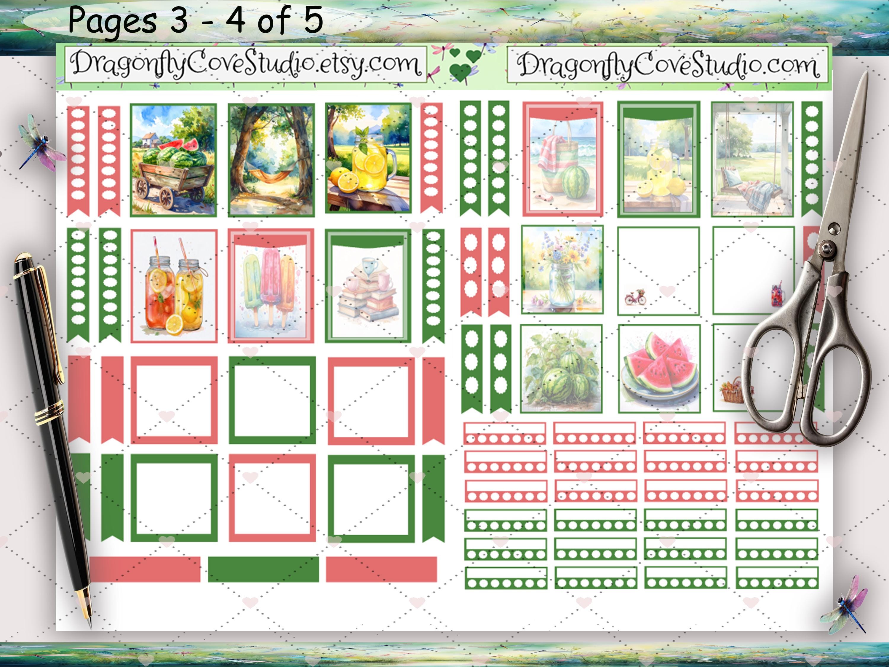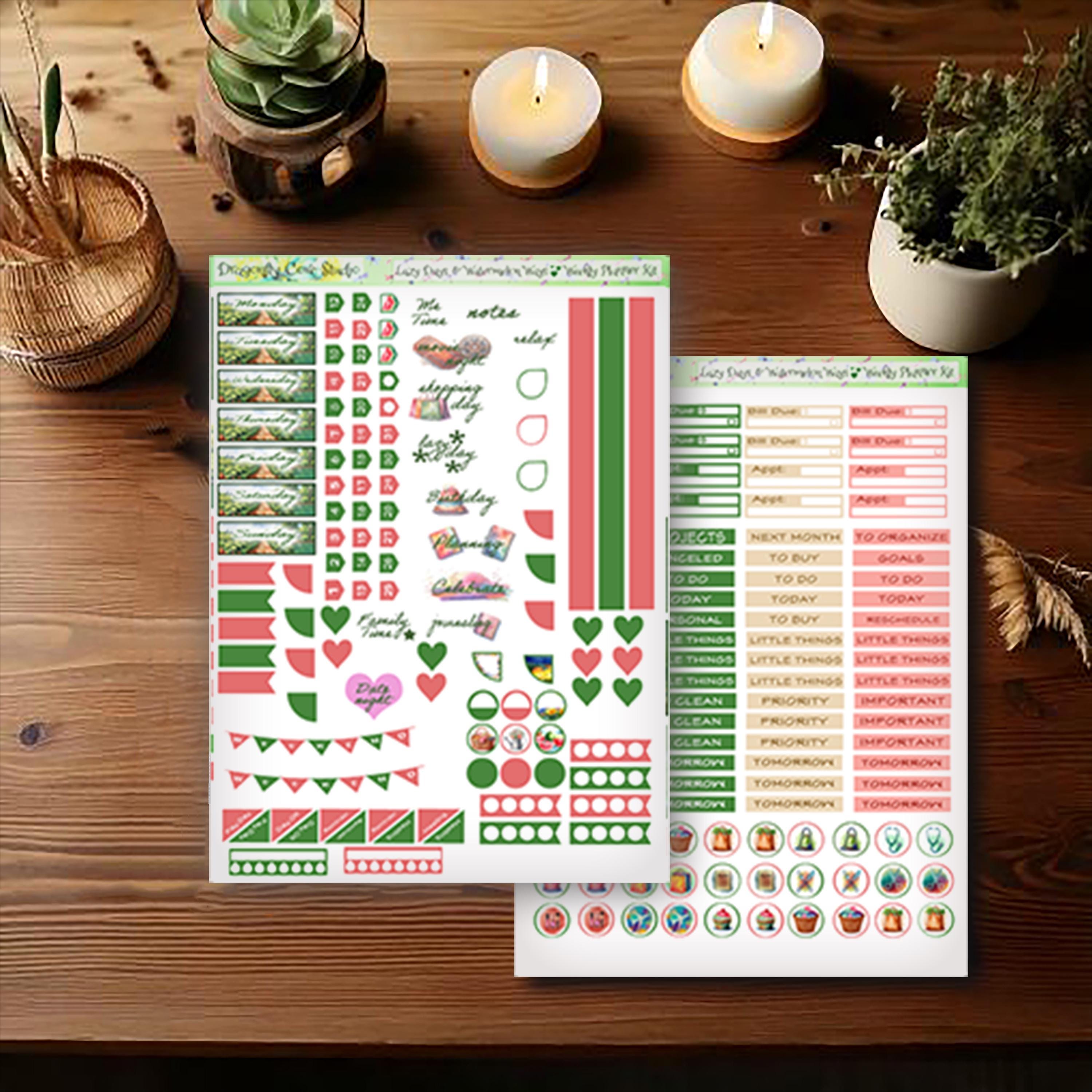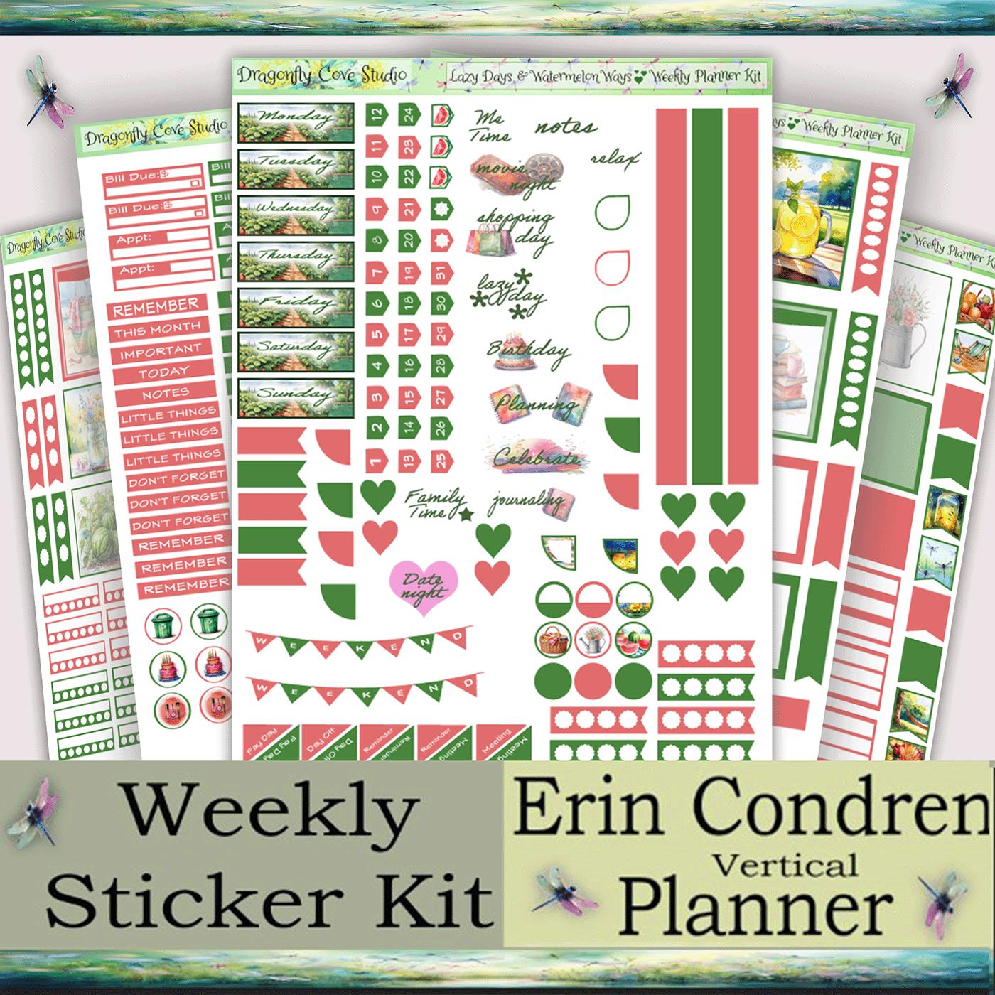 Erin Condren Vertical Planner Printable Stickers Weekly Kit | Lazy Days & Watermelon Ways | Printed, Shipped