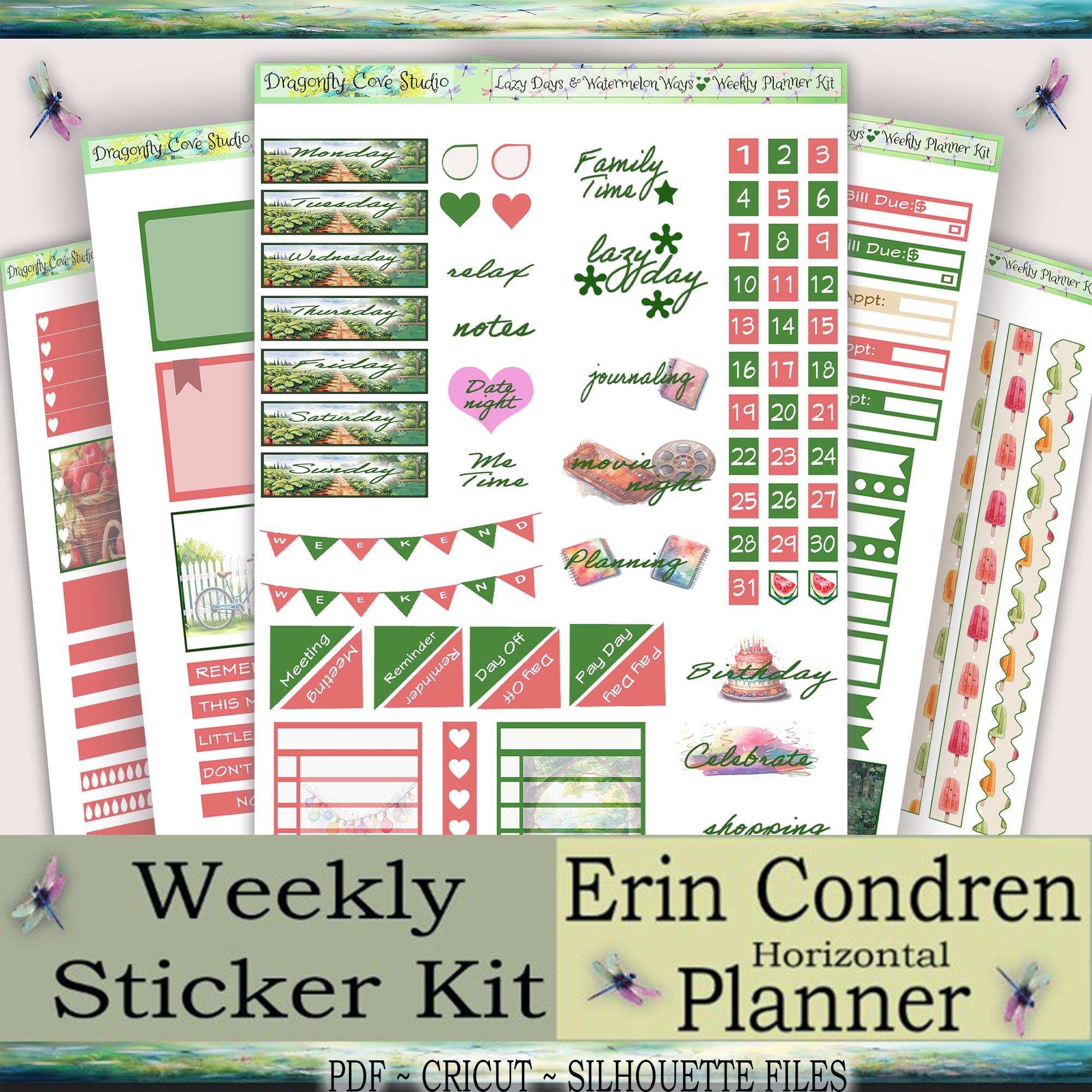 Erin Condren Horizontal Planner Stickers Kit | Lazy Days & Watermelon Ways | Silhouette + Cricut Cut Files + PDF
